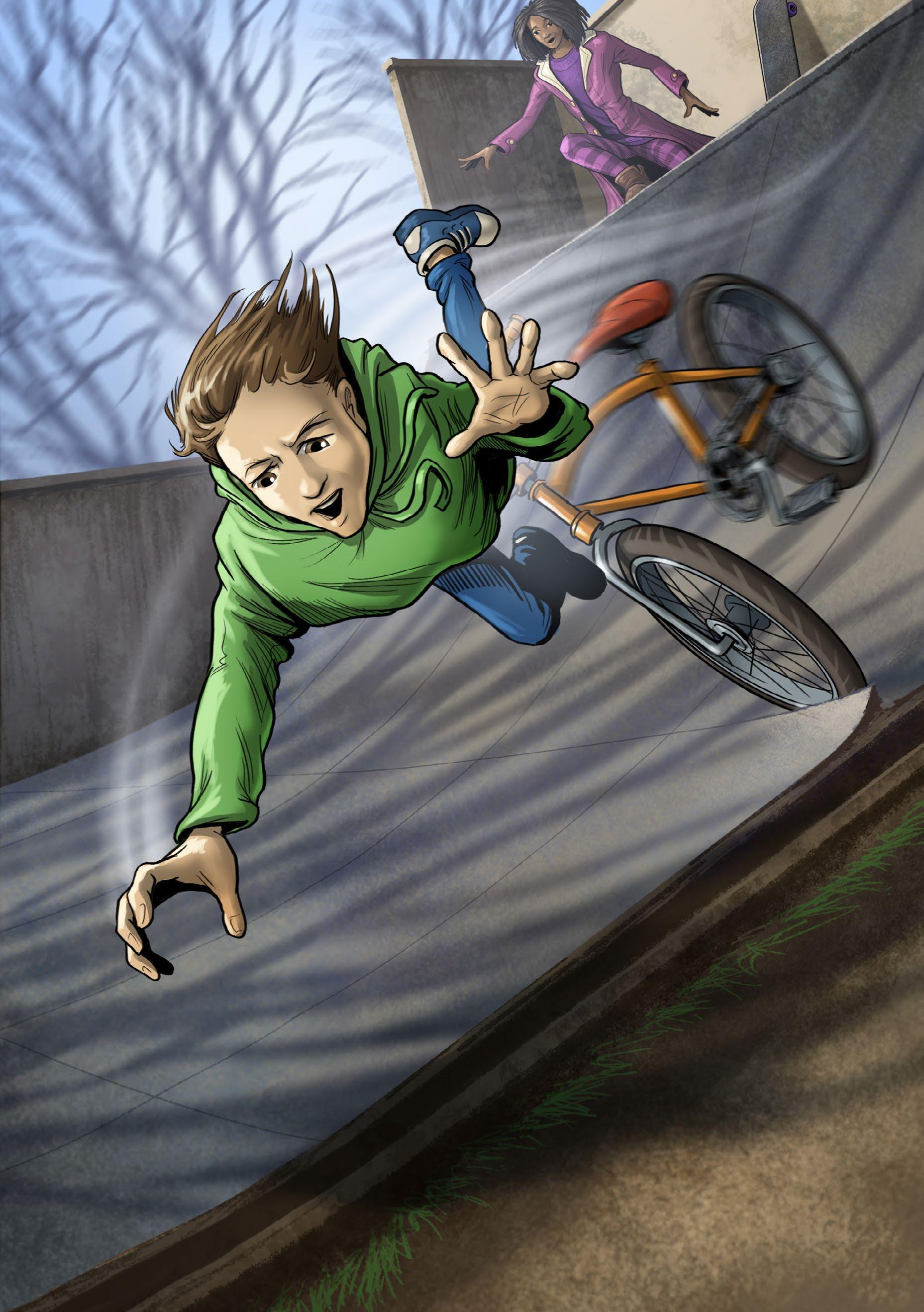 1. Why do you think Ben falls from his bike? (page 7)