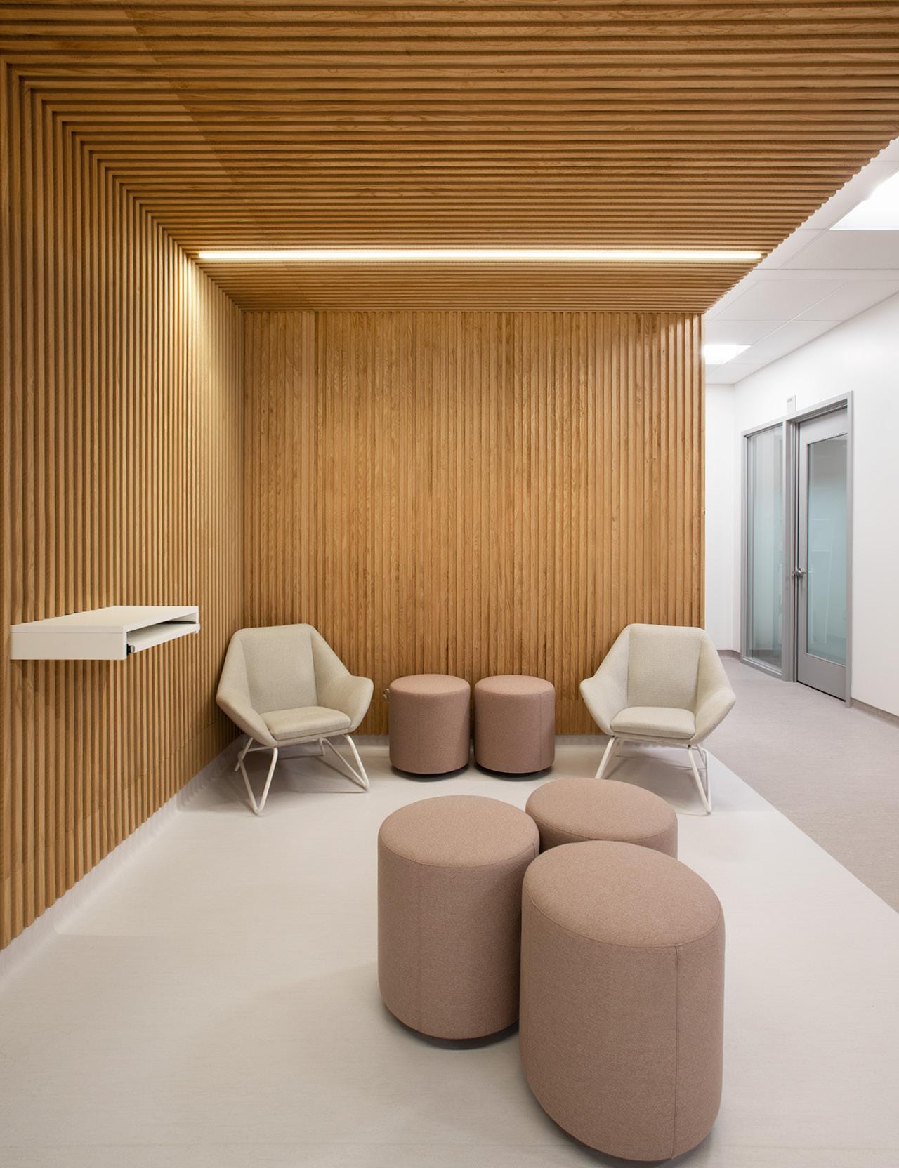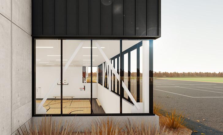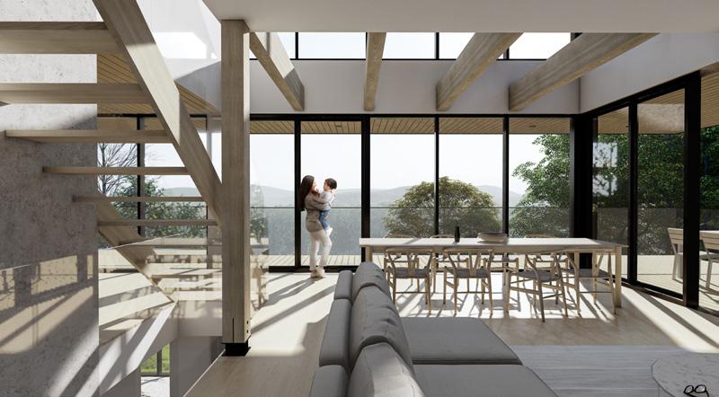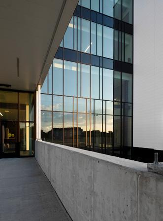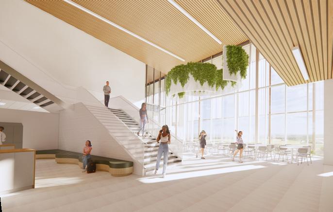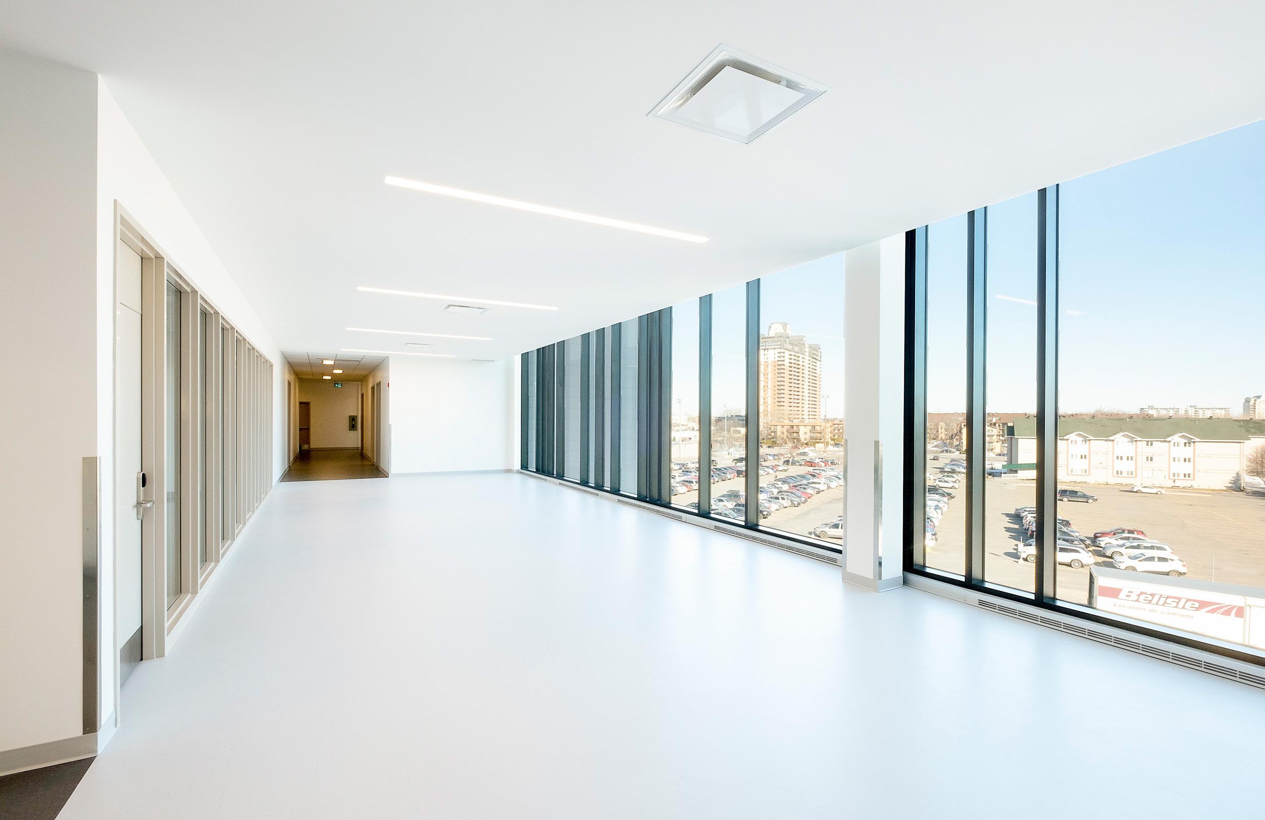 Véritable ancrage du bâtiment au sein de la communauté, cette aire centrale conçue d’une transparence matérielle, permettra une ouverture entre l’entrée principale (la communauté) et la nature (le parc Édouard-Crevier). Cette transparence servira d’invitation à l’intérieur du bâtiment, tout en offrant un lien visuel fort entre le bâtiment et le parc. Ce lien visuel avec la nature ainsi que le dialogue entre l’intérieur et l’extérieur seront le parti architectural du projet.