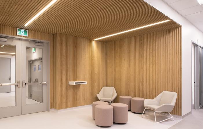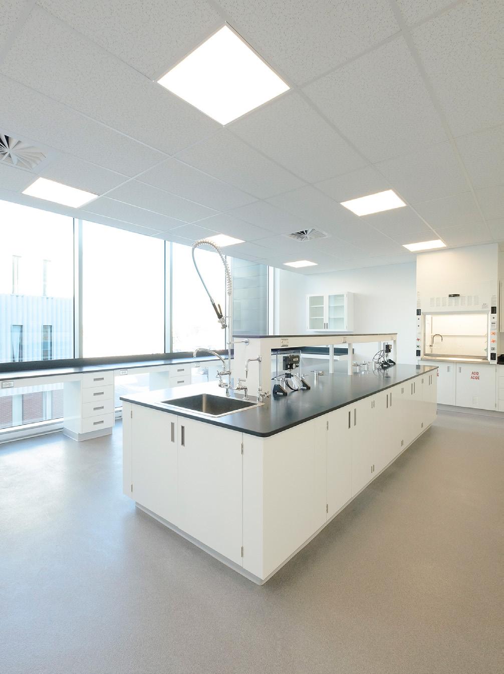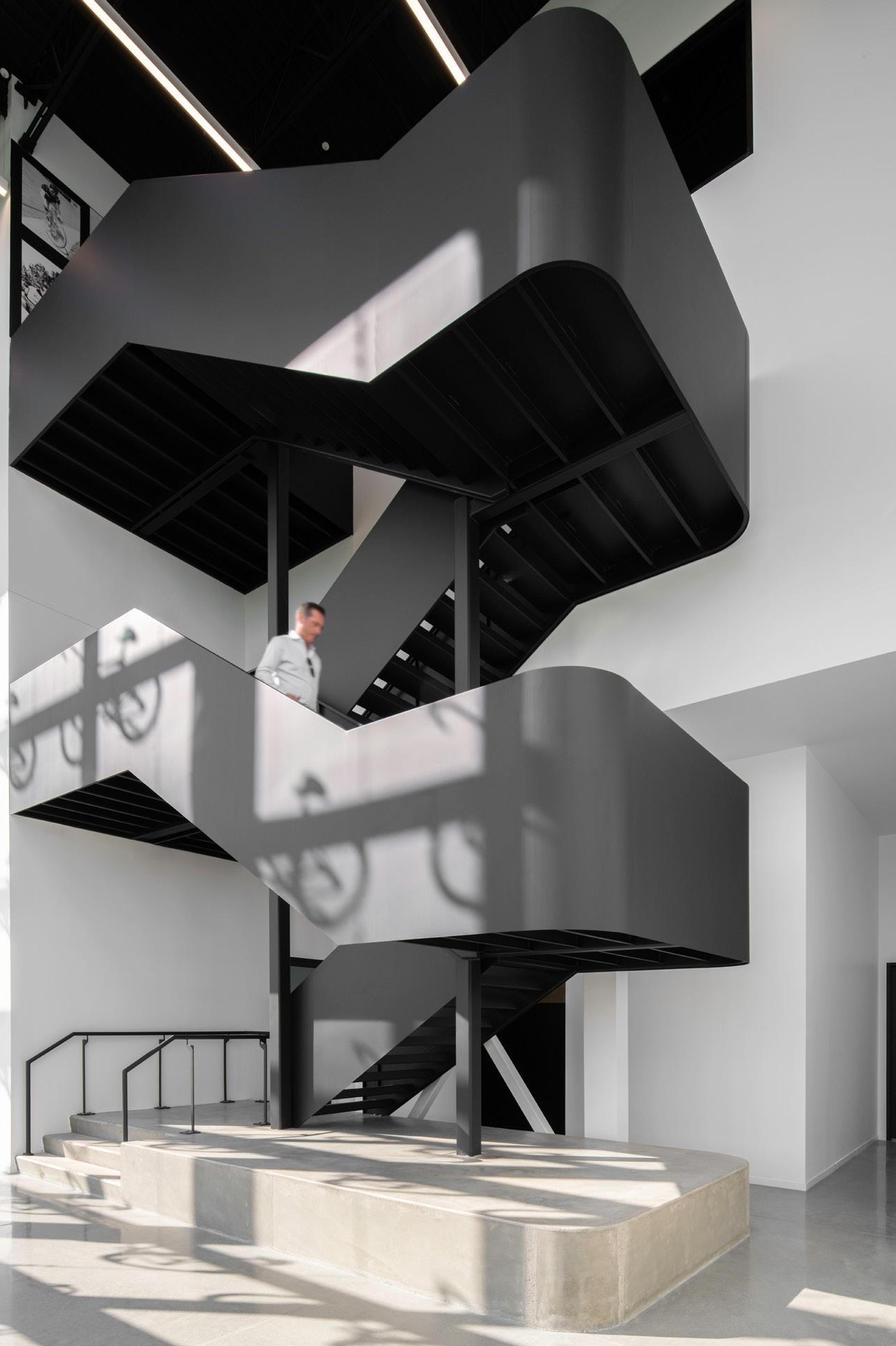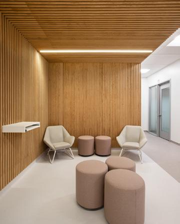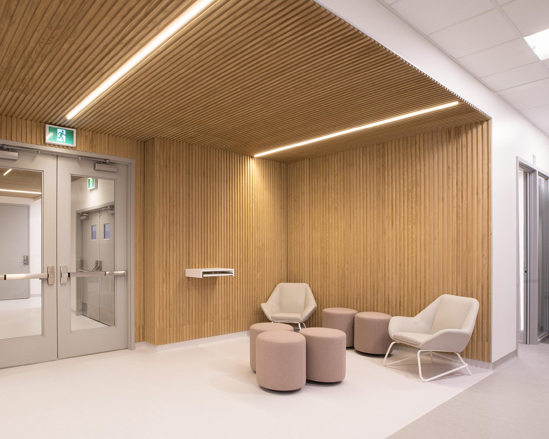 Des rampes-passerelles, un escalier-gradins au cœur de la vie scolaire et des coursives à divers niveaux ponctuent ce noyau de sous-espaces favorisant l’appropriation de l’environnement, rappelant les plateaux de Rimouski.