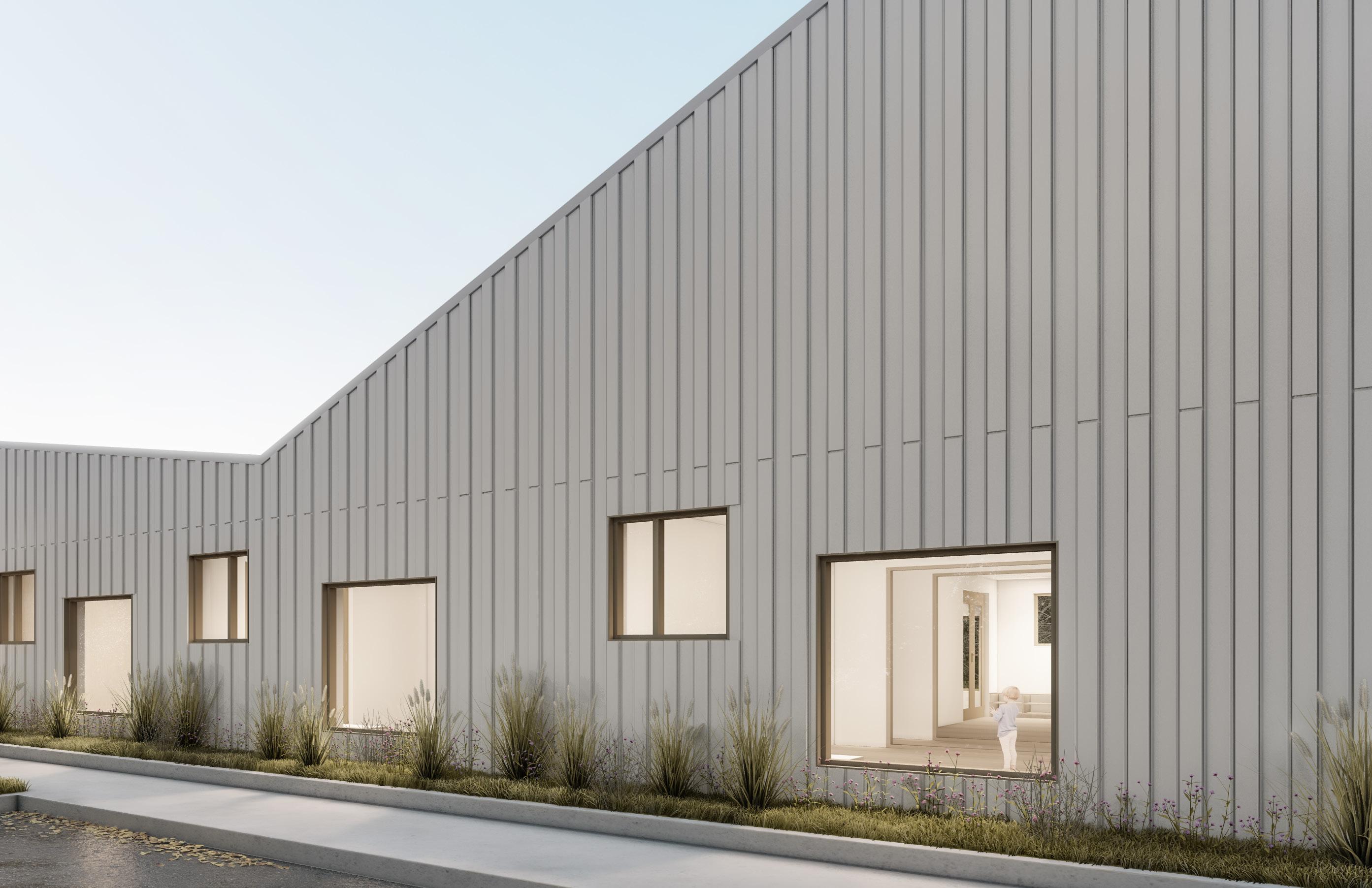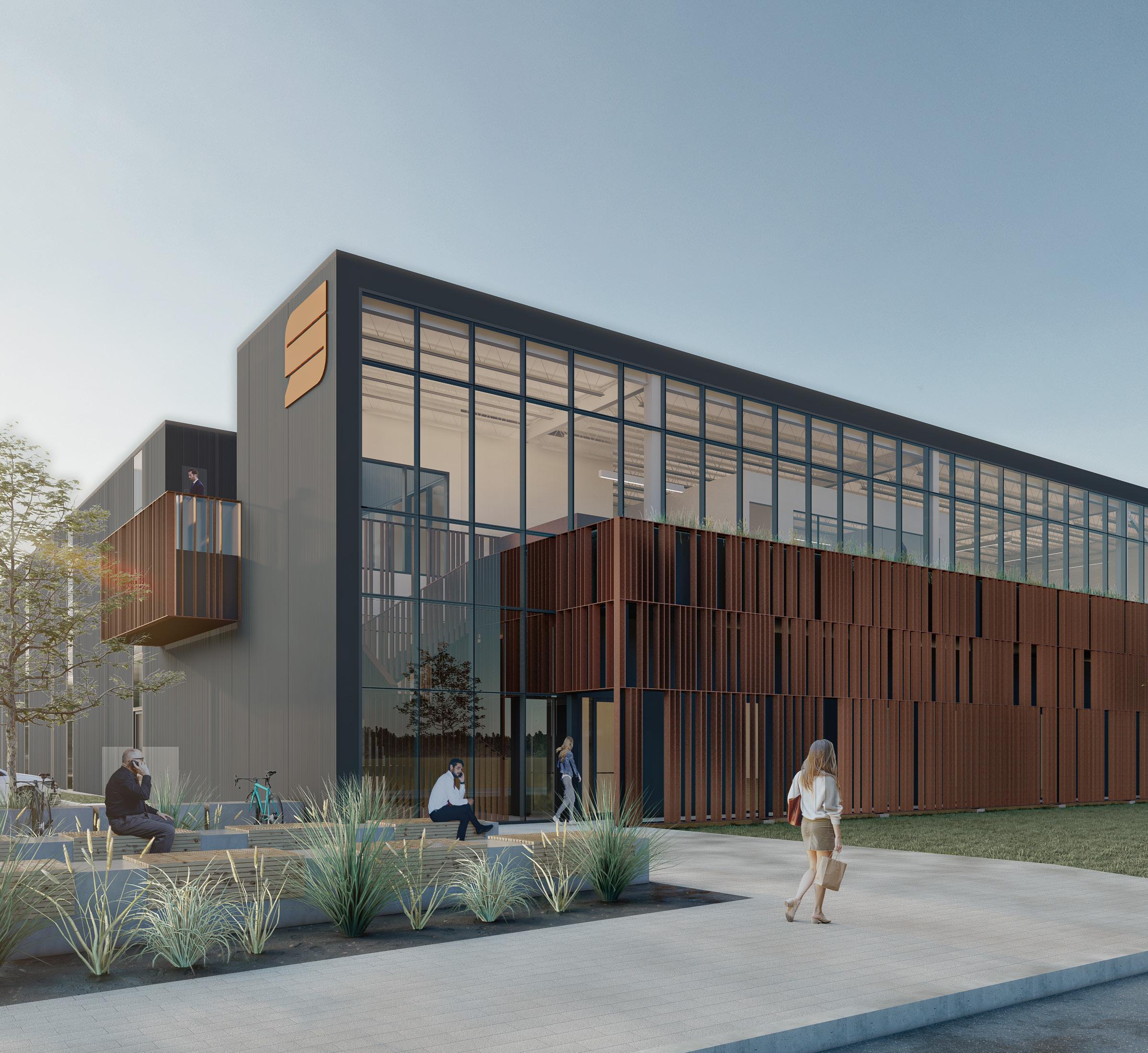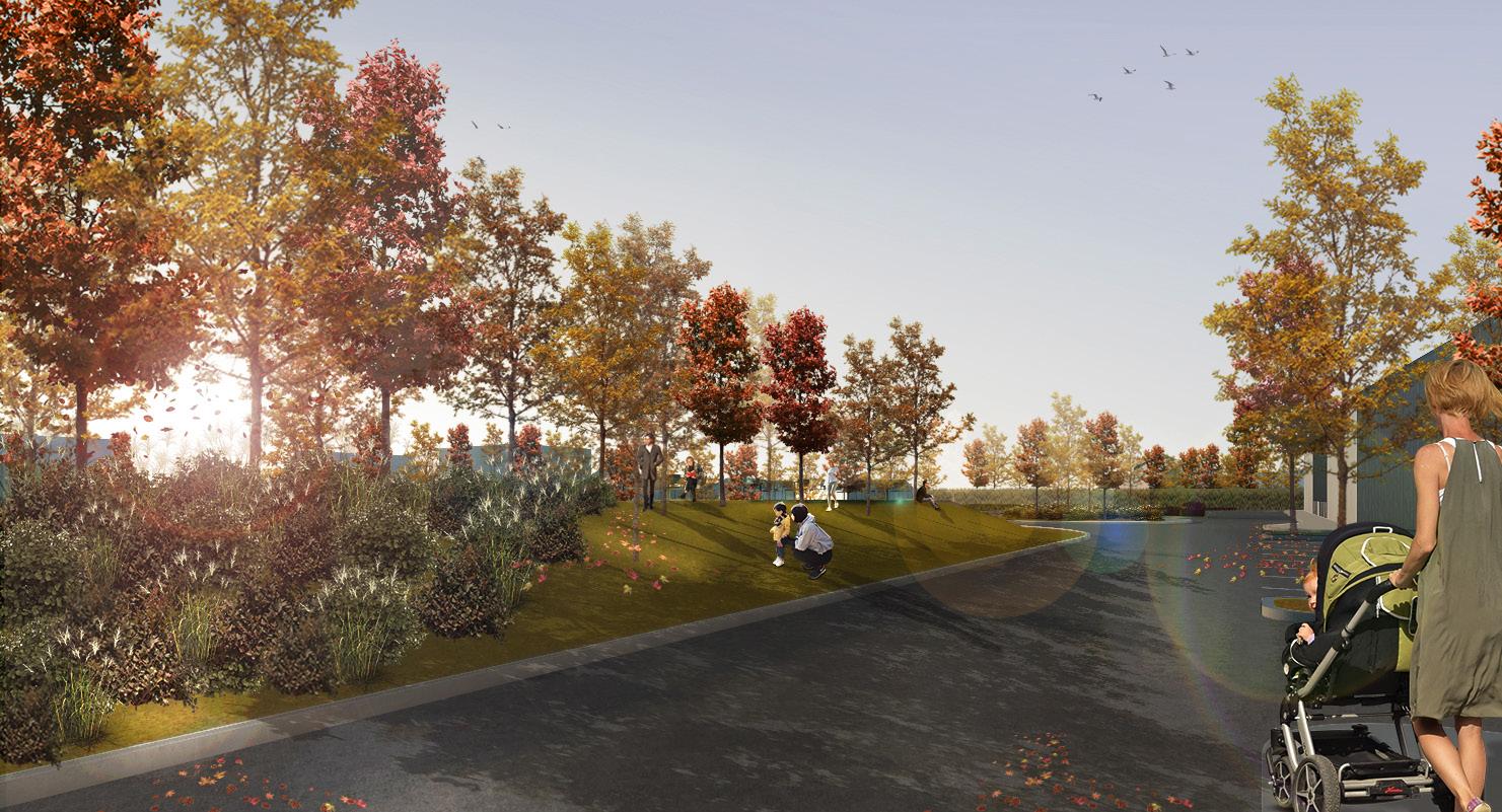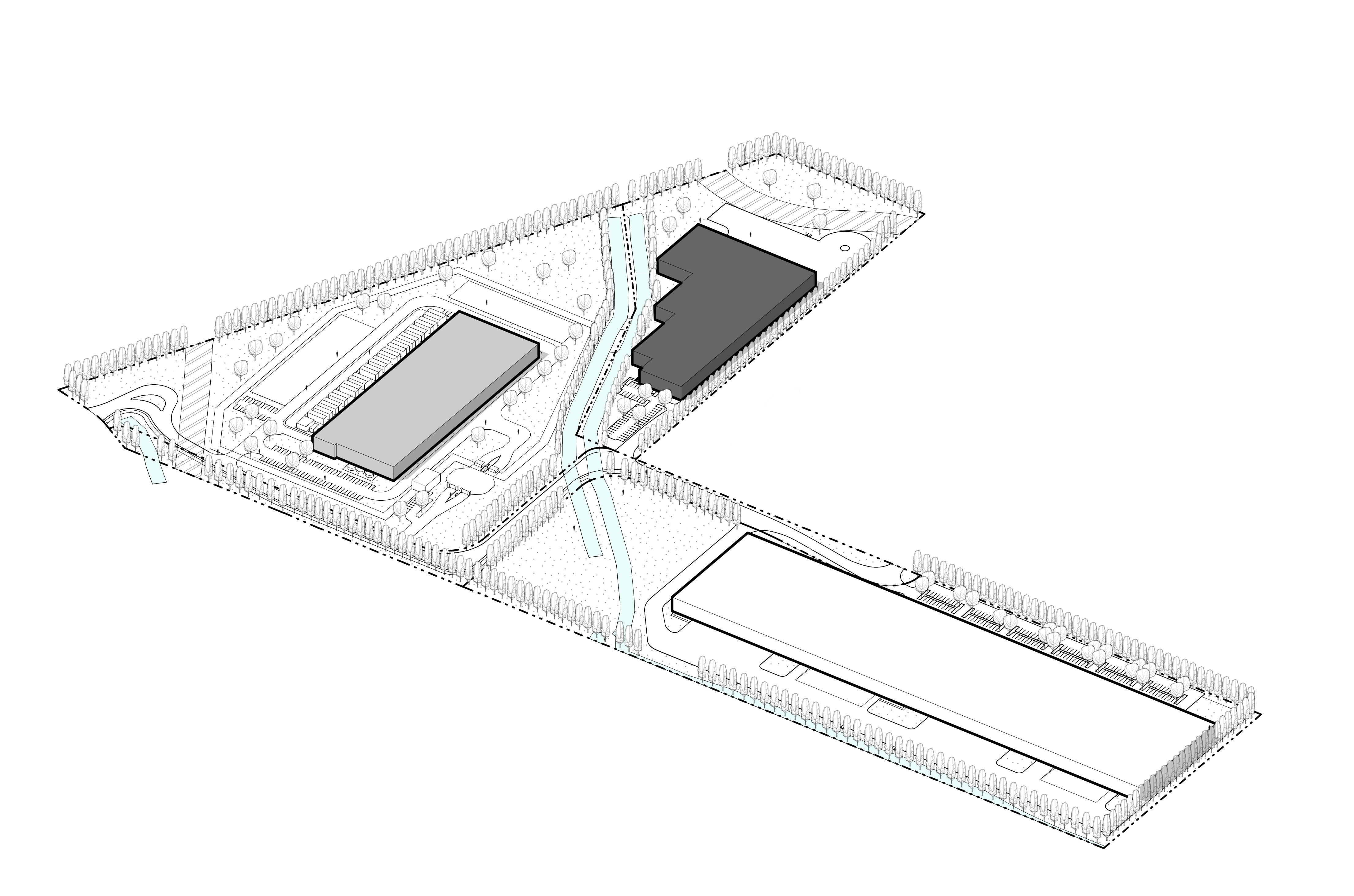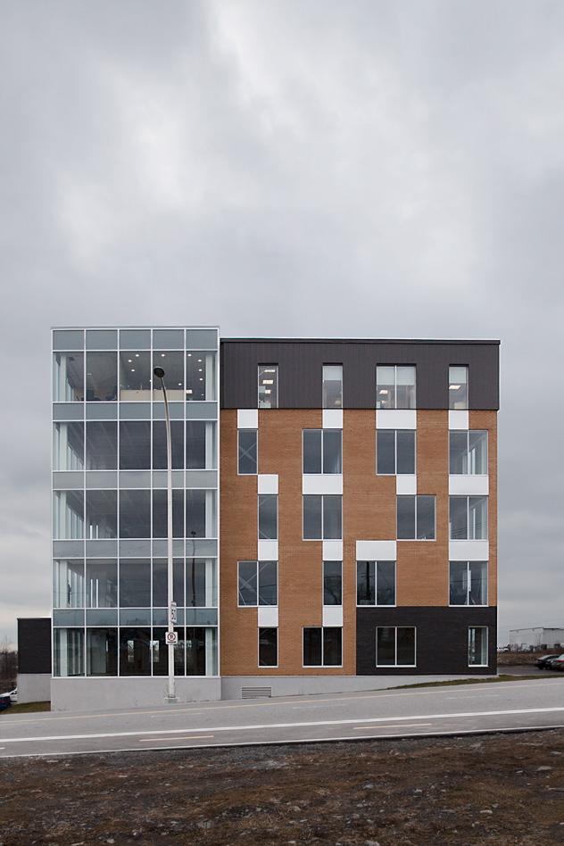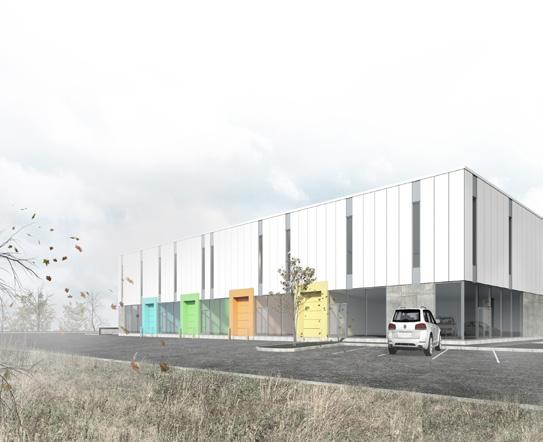 L’ensemble proposé s’inscrit aux côtés de l’Innoparc Albatros, une région innovatrice de Saint-Eustache. Le lot de quatre bâtiments se veut riche d’un point de vue humain et environnemental malgré sa vocation d’entreposage. Ceci se traduit par des aménagements qui améliorent quotidiennement l’expérience des occupants. La qualité des espaces bâtis doit également s’étendre à l’extérieur. Que ce soit par l’adaptation d’infrastructures permettant le transport actif ou encore par l’intégration de fossés végétalisés, le bien-être physique et mental de l’humain est au centre des préoccupations.
