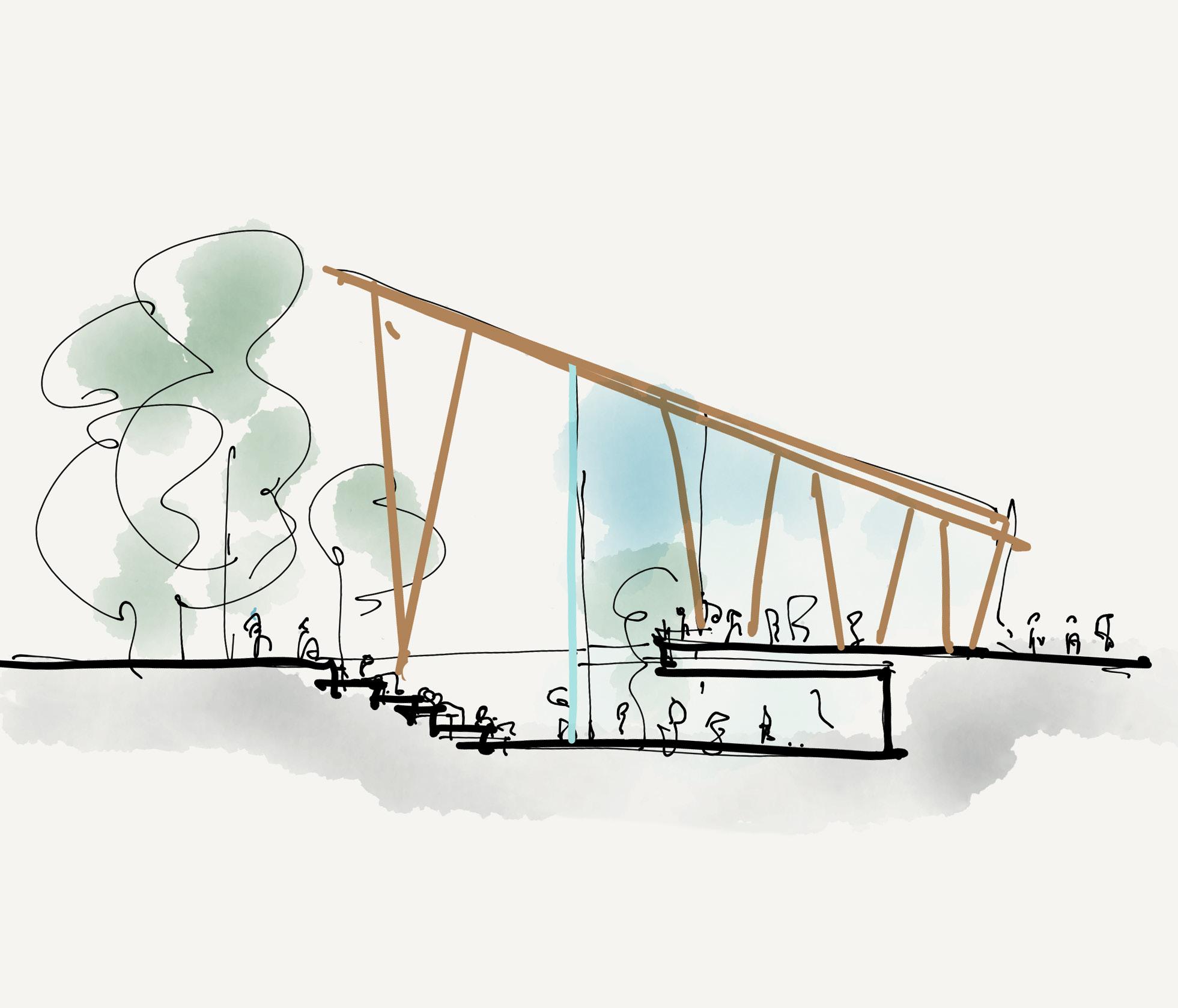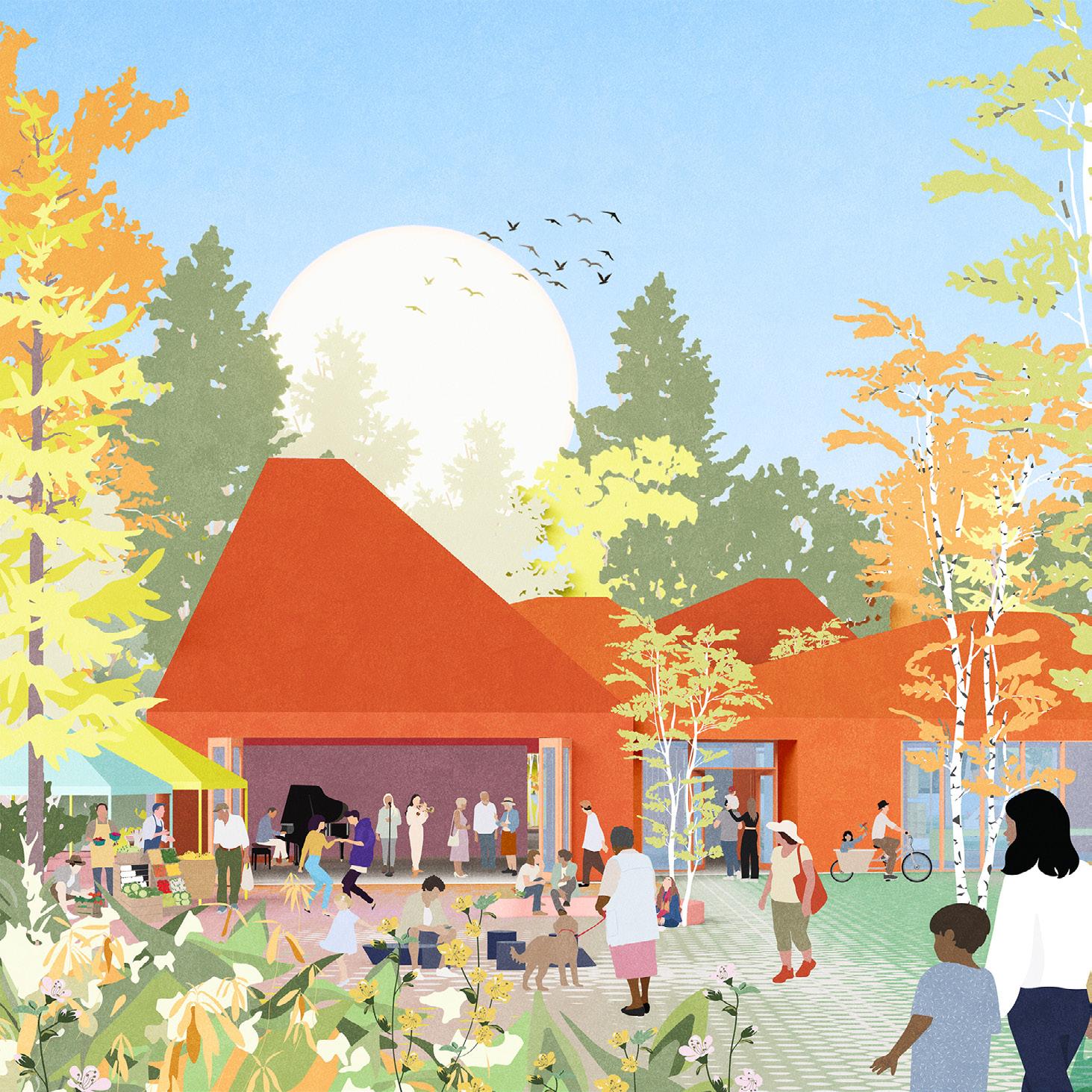 Nous imaginons qu’il existe entre l’école l’Orée des bois et le lac des Sources, un lien souterrain, mais bien présent qui relie les citoyens de la ville. Avec ce projet, nous activons ce lien en y faisant émerger à divers endroits, tel un système rhizomique, des moments communautaires sur la pleine profondeur du site. Ces moments se matérialisent sous forme d’architecture, d’aménagement dans le paysage, mais sont aussi manifestés par un rassemblement d’enfants, un moment de pause, une rencontre.