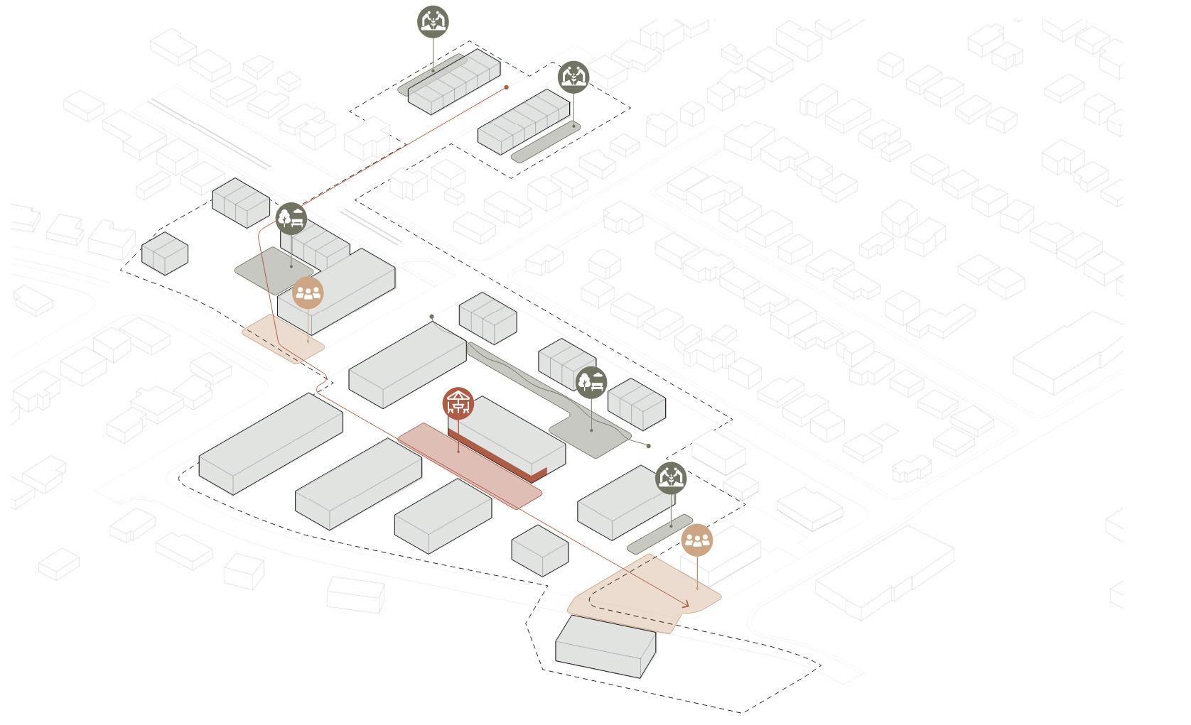 En développant des lieux conçus pour les résidents et travailleurs, le projet est voué à une intégration douce en accord avec son environnement.