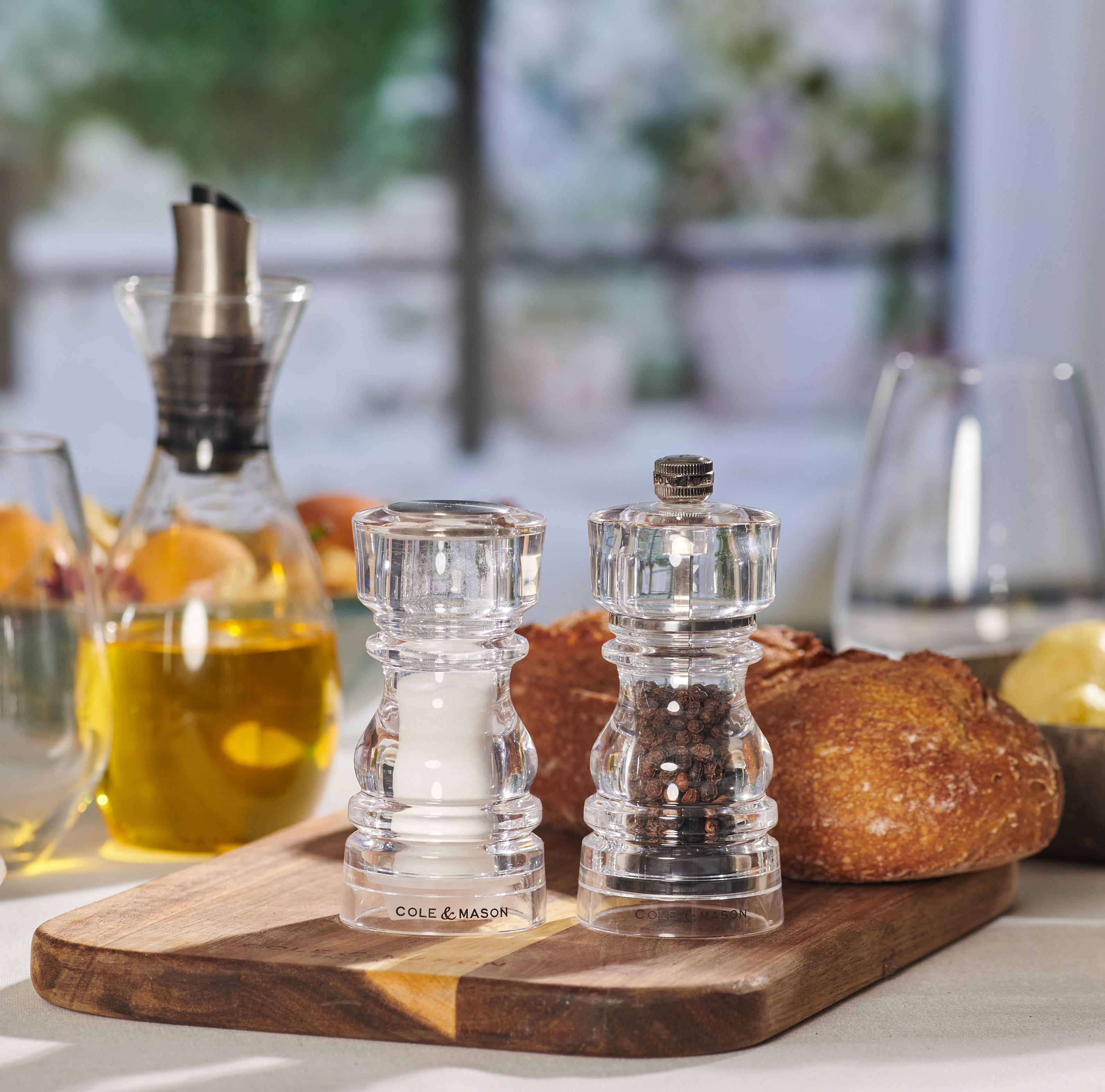 Acrylic mills and shakers are ideal for food service settings because they are durable, lightweight, and resistant to moisture and corrosion, making them perfect for high-traffic environments. Their clear design allows for easy identification and monitoring of fill levels, ensuring quick refills and efficient service. The smooth grinding and dispensing mechanisms provide consistent seasoning, while the non-reactive acrylic preserves the freshness of spices. Easy to clean and maintain, they offer a practical, stylish, and reliable solution for restaurants, cafés, and catering services. Pepper mills are fitted with our design registered Precision+ carbon steel mechanism and salt mills are fitted with an ultra-sharp, anti-corrosion ceramic mechanism unless stated otherwise.