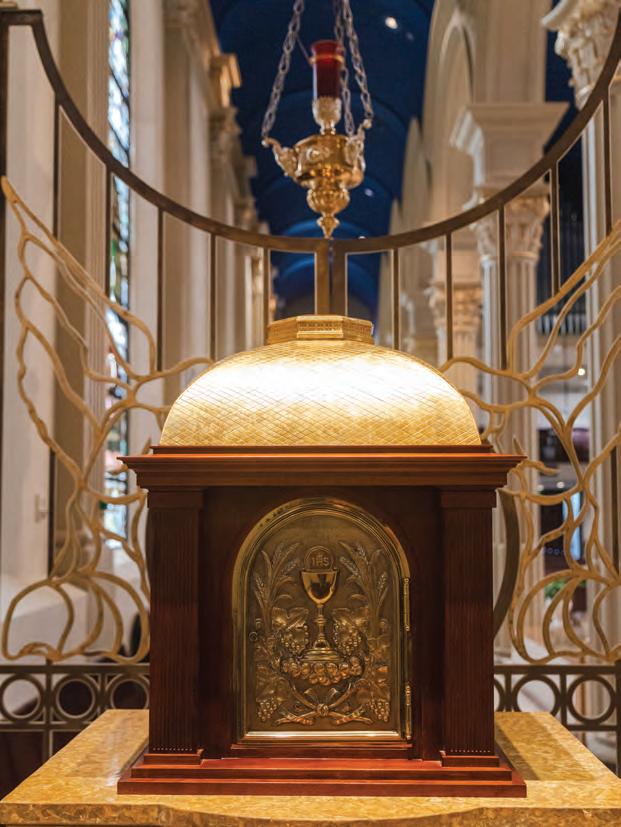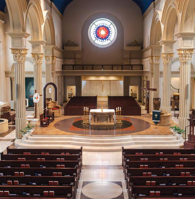 The main aisle is lined with NeoCorinthian columns and arches that provide stability and a graceful uplift to the entire space of the nave, reminding us of God’s presence.
