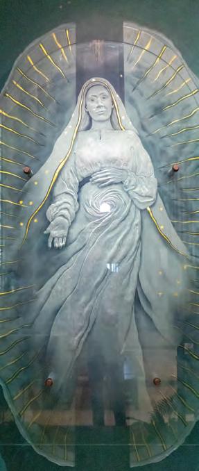 This etched glass sculpture of Mary the Mother of God, titled “Mother of the Universe,” depicts