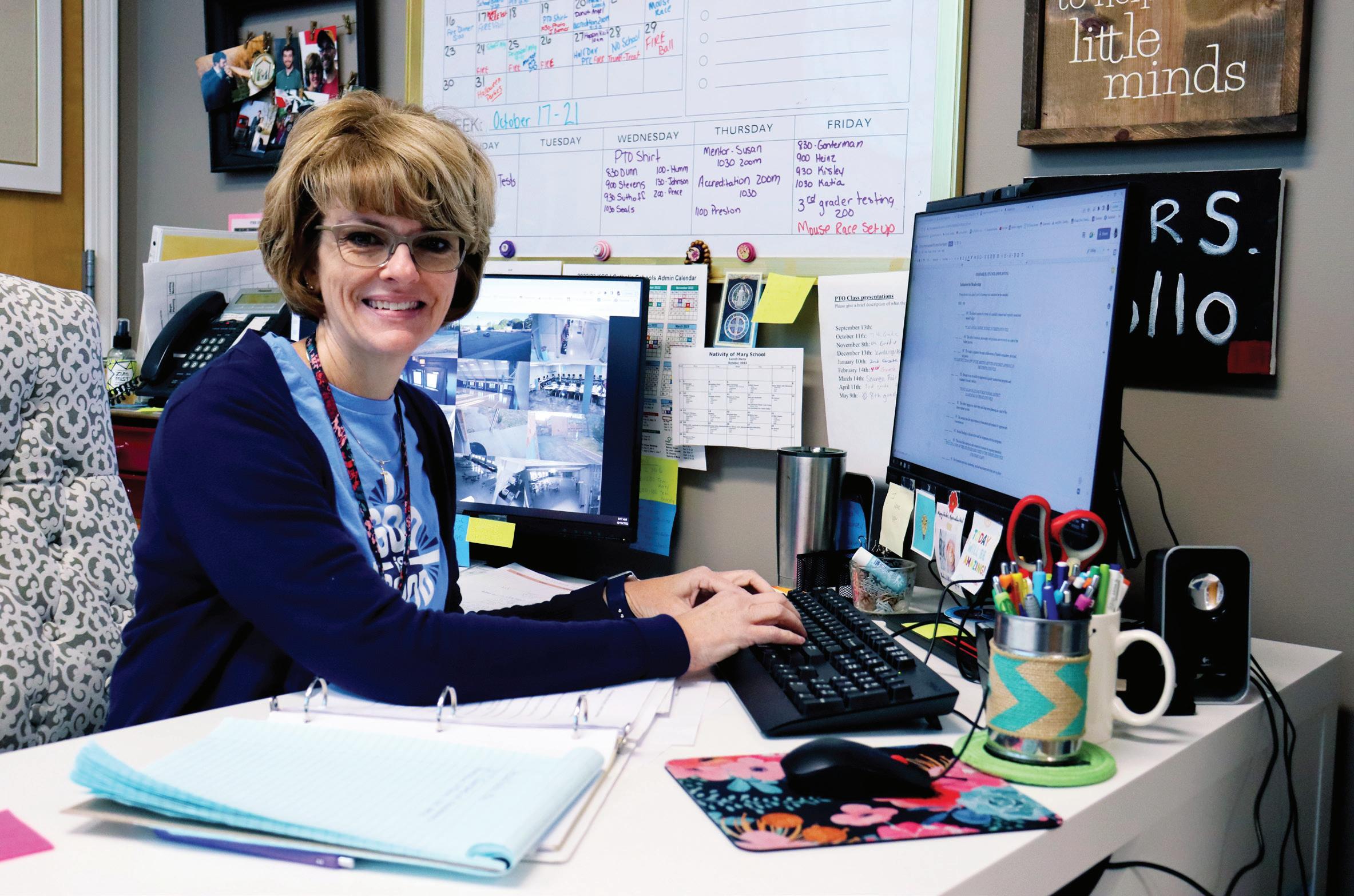 Every morning, It was Stephanie’s husband, Steve, who Stephanie makes led her to the Catholic Faith, but it was sure she is at the door greeting her son, Joe, who led Stephanie to her every student first teaching job in a Catholic school. as they come Joe was enrolled in kindergarten at into the building. Our Lady of Lourdes in Raytown, where “As soon as I he stayed through eighth grade, and see their faces, I know exactly Stephanie began teaching preschool. As how their day is she earned her degrees, she moved on going to go.” to Nativity of Mary School as an Early Child and Special Education Coordinator. Last year, an opportunity opened up for Stephanie to step into the role of principal at Nativity of Mary School.
