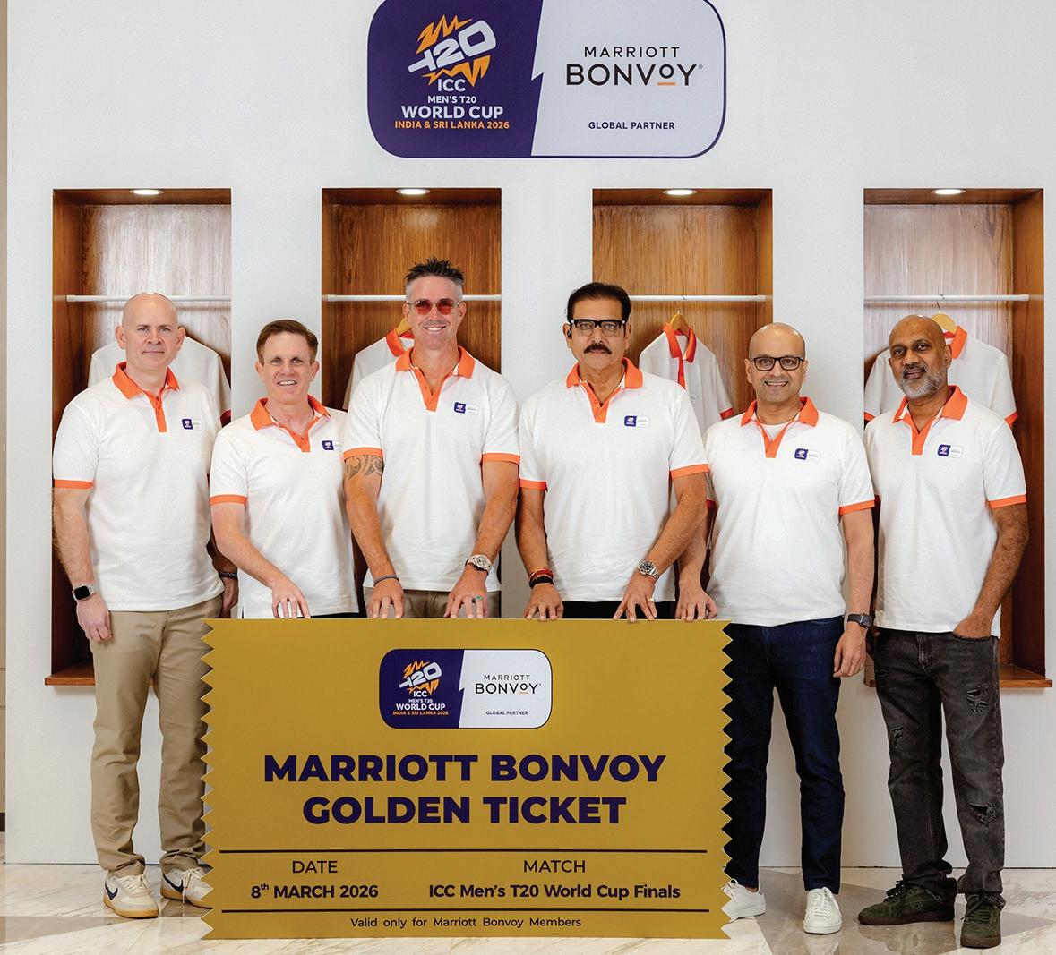 Marriott International’s rewards program, Marriott Bonvoy, is set to host more than 500 “bespoke” Marriott Bonvoy Moments in partnership with the International Cricket Council. Two Marriott Bonvoy members will win “the ultimate experience” with the Marriott Bonvoy Golden Ticket: a trip for two to the ICC Men’s T20 World Cup 2026 Finals. One of the Golden Tickets will go to the winner of the Global Marriott Bonvoy sweepstake, and the other will go to the member who bids the highest amount of Marriott Bonvoy point. Pictured from left to right: Andrew Watson, Chief Commercial Officer, EMEA, Marriott; John Toomey, Chief Commercial Officer, APEC, Marriott; Kevin Pietersen and Ravi Shastri, globally renowned cricketers; Neeraj Govil, COO, APEC, Marriott; and Kiran Andicot, Sr. Vice President, South Asia, Marriott. To enter the sweepstakes or learn more, click here