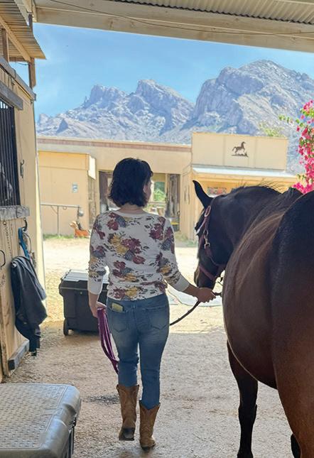 me a peppermint to give to her while he explains that Arabians have a stigma and are more widely regarded as temperamental and flighty throughout the horse world—a categorization that anyone who works with Scheyli’s Arabians would be sure to reject.
