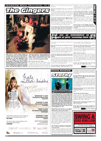 What’s next for you guys? Our EP comes out June 19th, then we have our Melbourne launches, and then we hit interstate and regional Victoria. Check out our website for all our gigs, free stuff and anything else you want www.thegingers.com.au. Apar t from that, we’re gonna just keep writing songs and playing shows! As she said, The Ginger’s EP “Love You Long Time� comes out on the 19th of June.