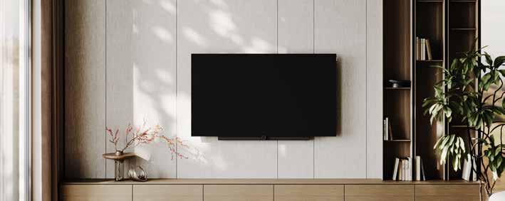 Hoogwaardige materialen en een 360-graden design zorgen voor een ongeëvenaarde esthetische ervaring. De exclusieve displayafdekking van echt beton of echte lava** en het frame van geborsteld aluminium creëren een uniek design. **alleen 42” tot 65”.