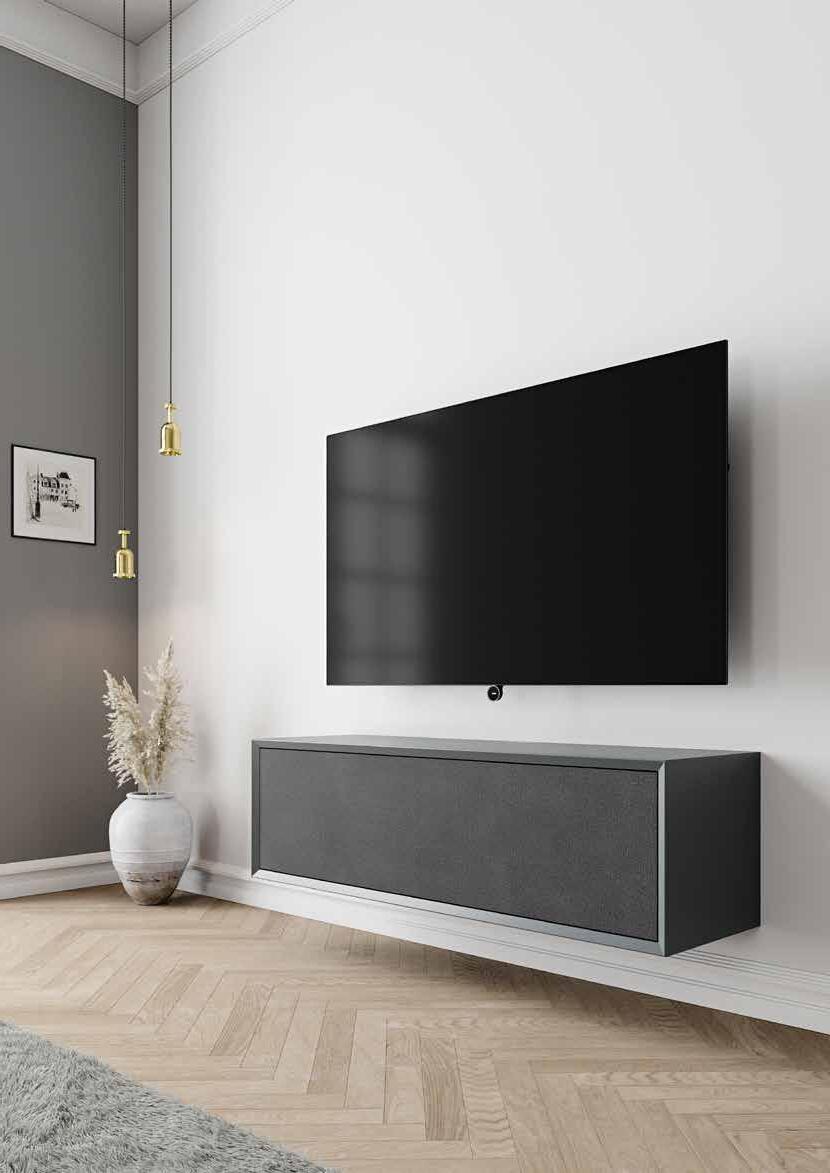De clic meubelen zijn verkrijgbaar met stoffen deuren in 10 verschillende kleuren. Met de stoffen deuren kan u luidsprekers en muzieksystemen verbergen en signalen naar binnen en geluid uit de luidsprekers naar buiten sturenzonder de deur te openen.