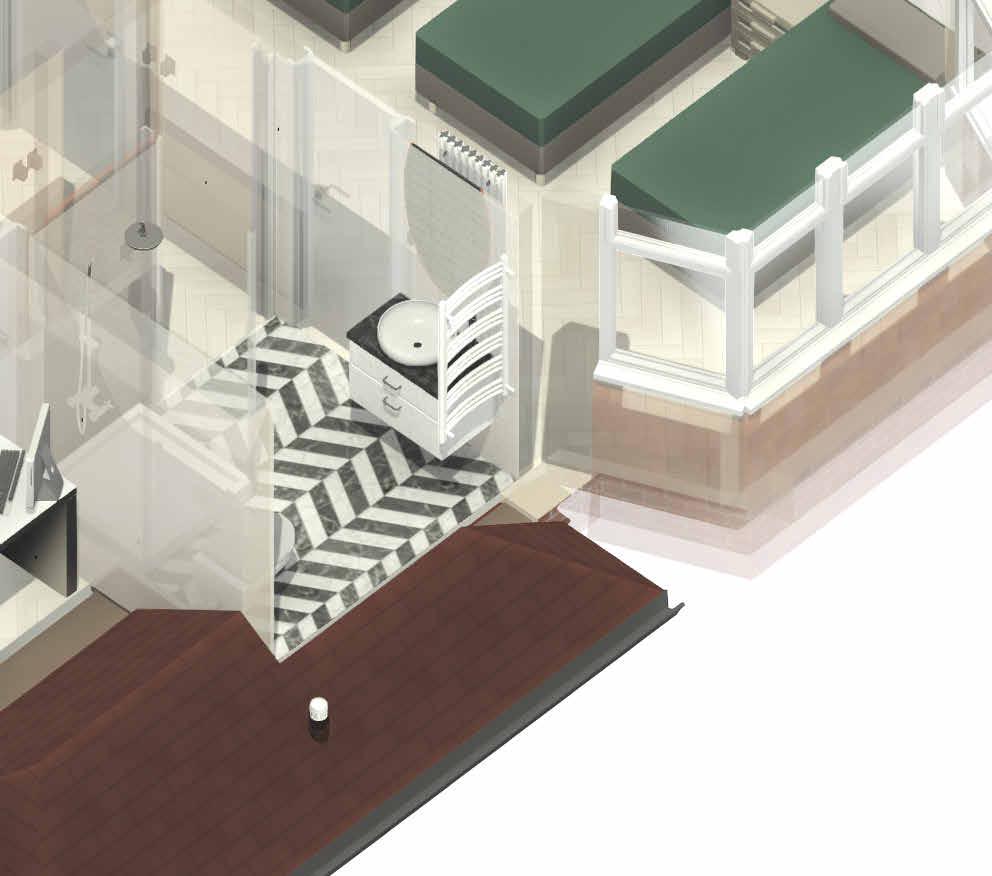 DECORATIVE TOP COATS: APPLY TWO COATS ACRYLIC URETHANE SHEEN (E.G. W & J LEIGH'S RESISTEX M237). DRY FILM THICKNESS: 40 MICRONS EACH COAT.