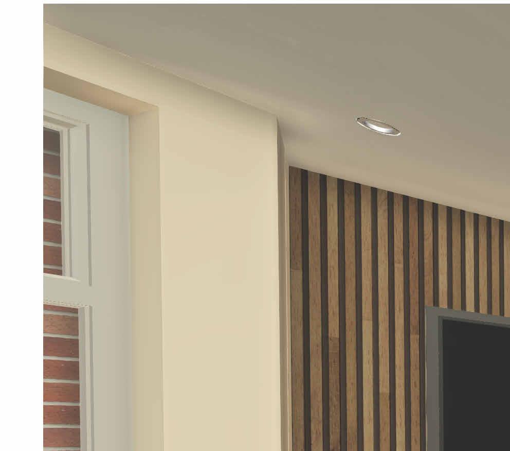 - 12.5 Plasterboard skimmed finished. MR Plasterboard in Wet Zones.
