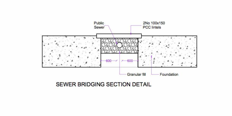 WHERE DRAINS PASS THROUGH EXTERNAL WALLS THEY ARE TO BE PROTECTED WITH A PRE-STRESSED CONCRETE LINTEL OVER (AS DESIGNED BY ENGINEER) WITH MIN. 150MM END BEARINGS, WITH 150MM CLEARANCE ALL ROUND PIPE AND THE OPENING IS TO BE MASKED WITH RIGID SHEET MATERIAL TO PREVENT THE INGRESS OF VERMIN OR FILL.