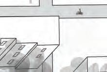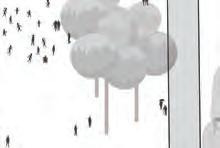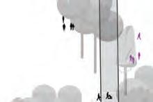“This vertical room is organized by a series of playful volumes that appear to float within a gridded framework. These spaces transform the mundane domestic routine of folding, drying, and storing laundry into an exciting spatial adventure. The figural volumes provide community closet space for inhabiants to store, “hand-medown,” and share articles of clothing, while the structural framework elevates drying laundry into a joyful visual spectacle.”