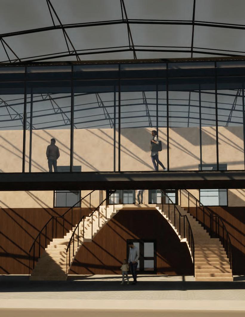 Located in Downtown Los Angeles, CA, the concept of this building was to merge the interior and exterior spaces. This is accomplished by the use of the oversized space frame roof allowing for comfortable temperatures while enjoying the outdoor amenities. In addition, there are several meeting rooms, a recreation area, a cafe, and computer lab/library. The locally sourced wood paneling and stone veneer, as well as the solar panels assist with energy efficicency.