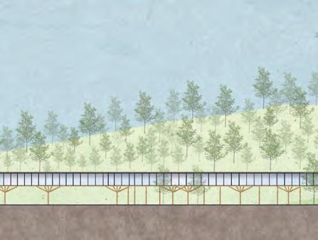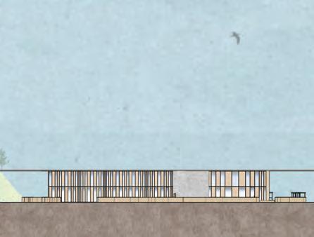 Located in Alexandria Bay, NY, our group was tasked with creating a new design for the border station between New York and Canada. The goal was to give a new reputation of “border station” from being intimidating or scary to more welcoming as you enter the adjacent country. In our design, we used the natural landscape as inspiration and also included a space for visitors passing through to enjoy or rest from traveling while still being strictly regulated as a government facility.