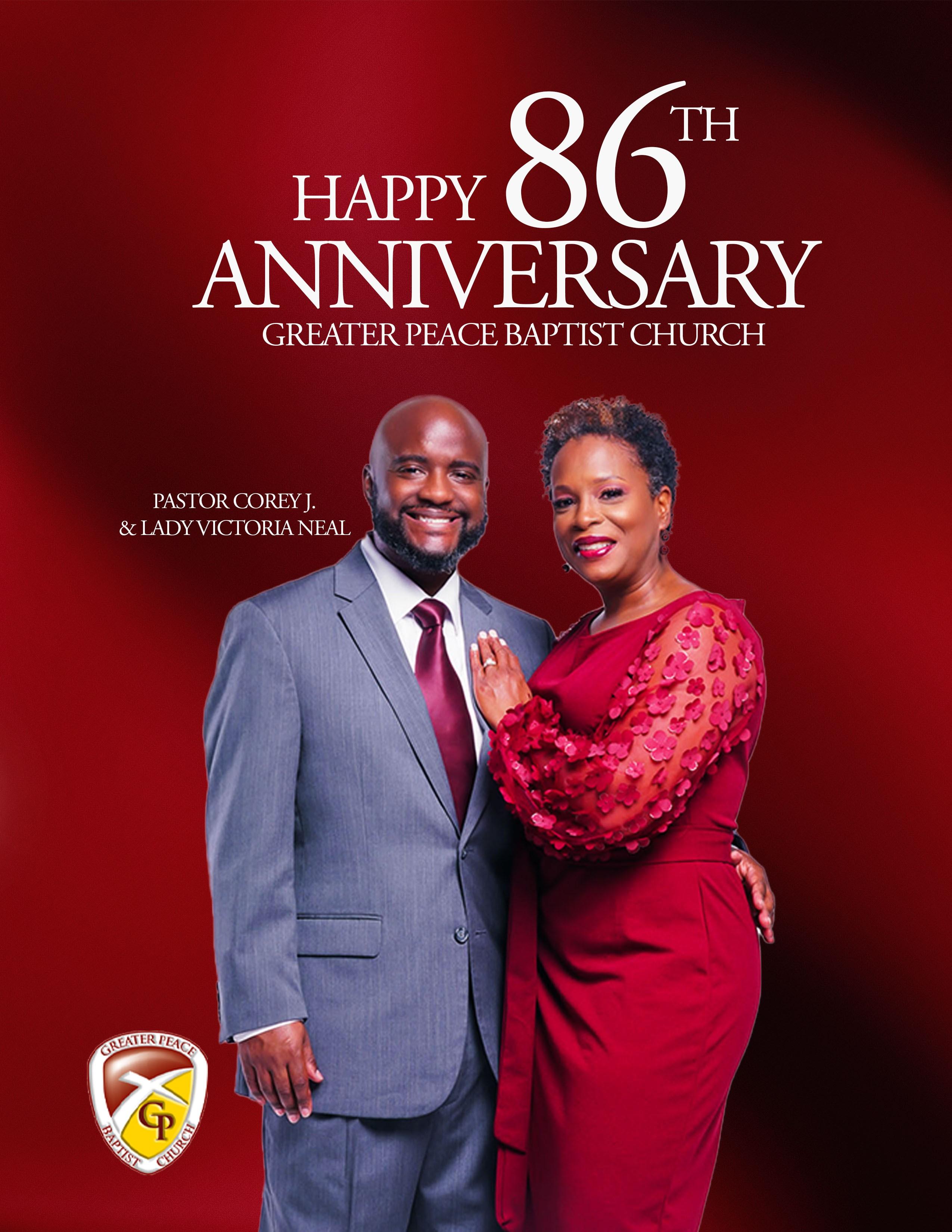 With a grateful heart and deep appreciation, I greet you as we celebrate the 86th Church Anniversary of Greater Peace Baptist Church. What a mighty God we serve—who has sustained, strengthened, and secured us through every season, and whose faithfulness continues to guide our journey.