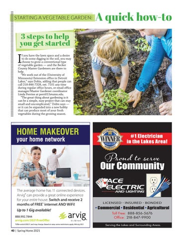 Our Community The average home has 11 connected devices. Arvig® can provide a great online experience for your entire house. Switch and receive 2 months of FREE* internet AND WiFi! Up to 1 Gig available! 888.992.7844 arvig.com/2021FreeOffer *Offer ends 6/30/21 and may change. Based on area; some restrictions apply. ©Arvig 2021