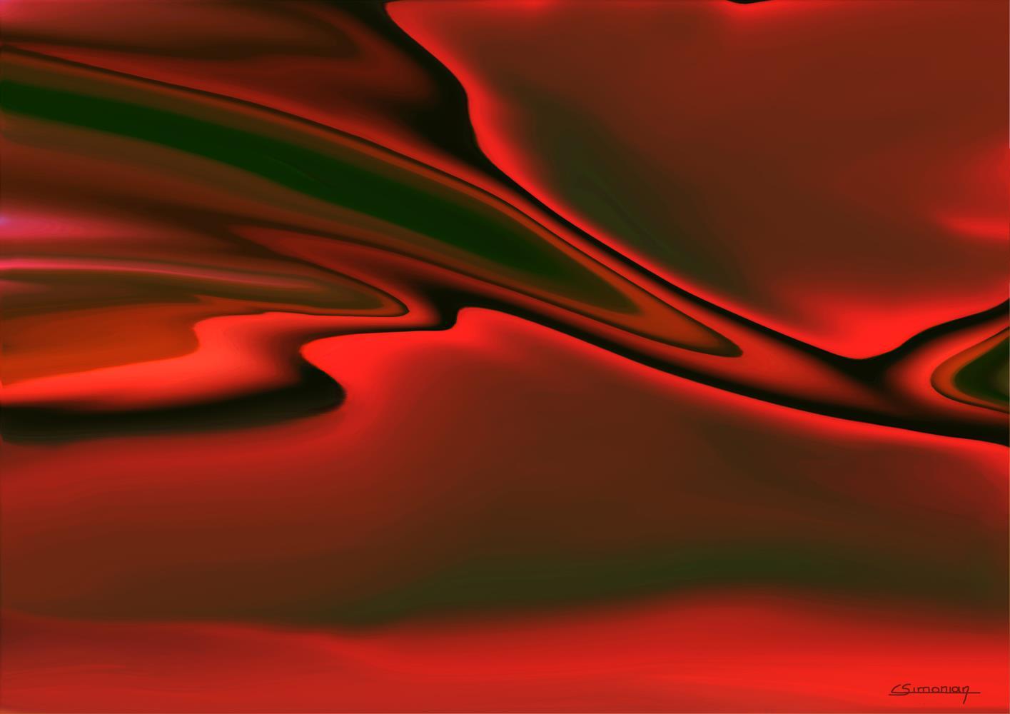 Christian Simonian’s visually sumptuous, sinuous surreal-swirling sanguineous plasma seascape. The cirsoid “S” shaped river begins at the furthermost-left midpoint of the digital canvass (rendered in thick black) and meanders inwardly, metamorphosing into an estuary that eventually empties into a delta (at the right-most midpoint side of the frame). An exclamatory Sacre Bleu comes to mind; Poet Samuel Coleridge’s "Kubla Khan’s Xanadu:
