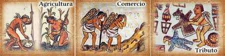 La economía azteca se basa principalmente, en la agricultura y el comercio: El cultivo de las tierras se asignaba a los calpulli o a los clanes, repartiendo la producción entre los sacerdotes, las familia del clan, el Estado y a su jefe.