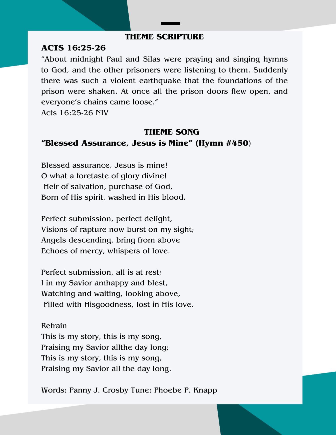 OPENING HYMN BLESSED ASSURANCE, JESUS IS MINE