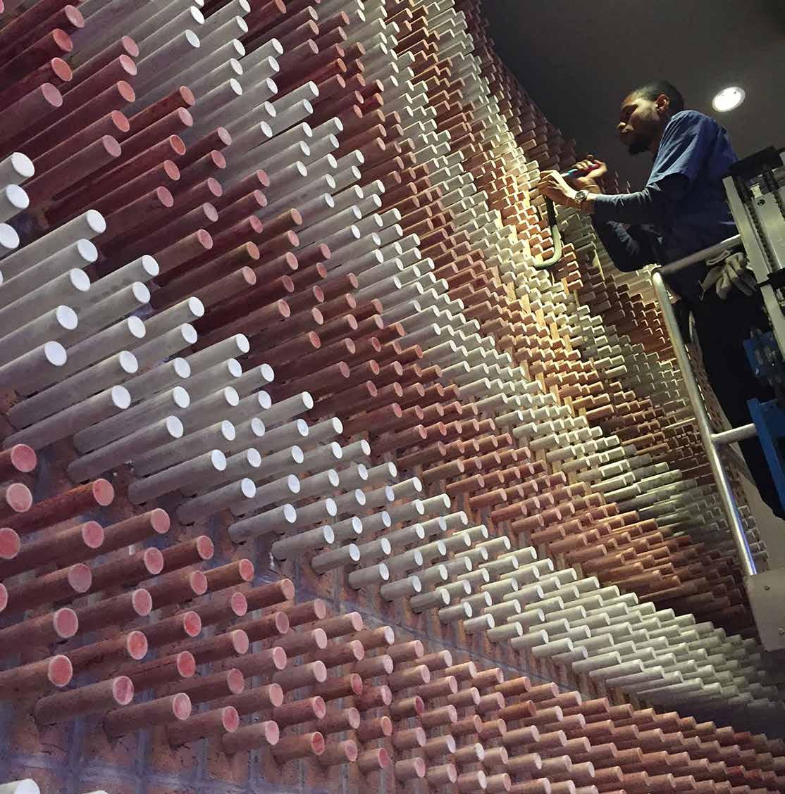 An installation of this magnitude was an ambitious undertaking, The team faced a huge challenge in sourcing the granite from the quarries within U.S. The team located a quarry in Southern India that was willing to engage in this unusual experiment.