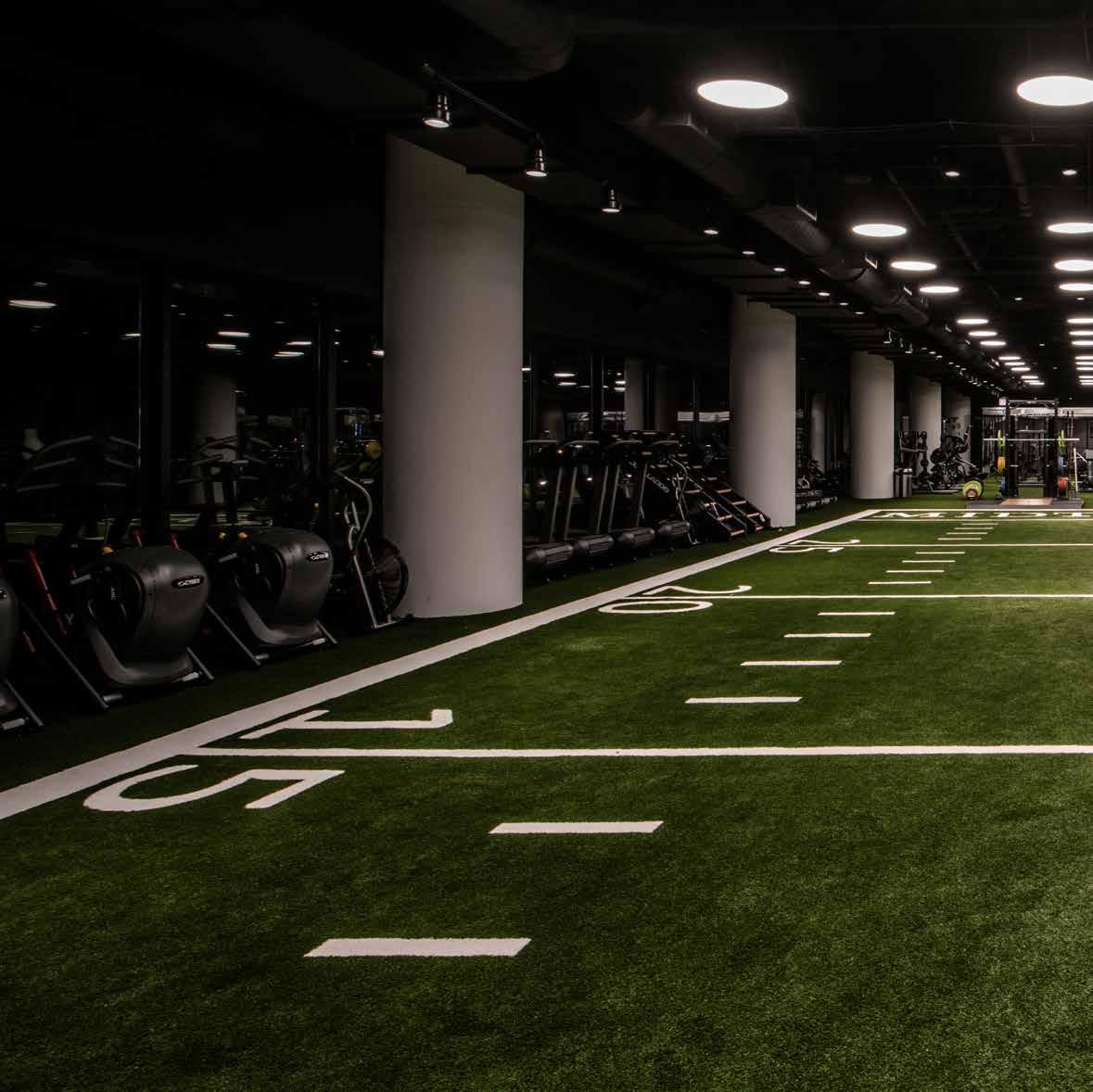 Midtown is not your typical health club. It spans three floors, starting with the quietest programming at ground level where guests can check-in at the reception lobby and head to the spa, salon, locker rooms, indoor pool or retail shop. Climbing a grand staircase to the second floor, guests land at the hub of the club where they can relax, dine, workout on the cardio machines, take a multimedia spin class in the Ride studio, sweat it out in a group fitness class in The Theater, enjoy yoga or pilates in the Mind & Body suite, or swim in the outdoor pool. Moving up to the third level, guests find The Field - a turf surface surrounded by professional training equipment that extends outside to a rooftop workout area with spectacular views of the city. Adding high intensity to the floor is an “Everybody Fights” boxing gym complete with punching bags and a ring. Throughout the club, movement is choreographed between floors and spaces for easy wayfinding and cohesion.