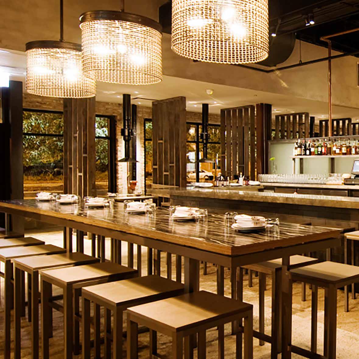 Dish is a contemporary American restaurant and nightclub located in a vibrant Dallas community. Unique fixtures, textiles and furnishings were brought in from around the globe to contrast with a backdrop of durable raw metals and woods.