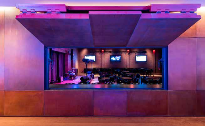 Furthering the experience DMAC used a tasteful tradition of restored furniture and finishes that contrasts with leading edge audio/video equipment. Much like the operable nature of the surrounding environment, tv and projection screens are concealed within oversized mirrors allowing the space to commit to a true prohibition experience or open to the needs of a contemporary venue.
