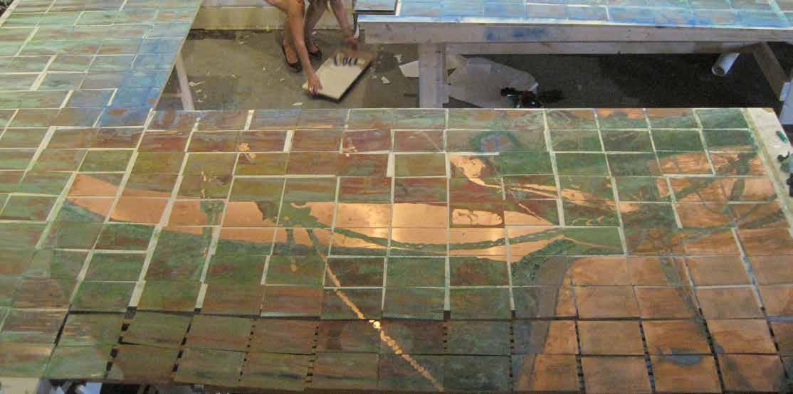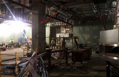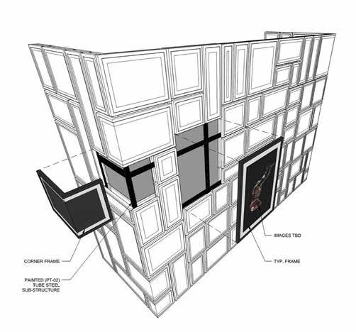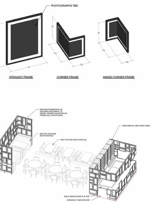 33 A5 ( M O D U L E A / B / C1 ) 1 3 / 4 13 - 4" AFF 4 2" 1 3 4 " ( M O D U L E A B C1 ) 3 " ( M O D U L E A / B C2 ) 13 - 4 AFF ( M O D U L E A / B / C2 ) 3 " 7 2-A1 8 2 GL-202, ANTIQUE MIRROR ADHERED TO MDF BACKER 2 x 4" ALUMINUM TUBE PERIMETER FRAME, PAINTED TO MATCH MT-004 1" x 4" ALUMINUM TUBES PAINTED TO MATCH MT-004, TYP MT-203, COPPER SHEET ON MDF BACKER BLIND FASTENED TO SUBSTRATE THROUGH ALUMINUM PLATE WELDED TO TUBES, PROVIDE 1/4" DIA. HOLES @ 12" O.C + 2" FROM EDGE FOR INFILL CONNECTIONS TYP. @ ALL INFILL WD-203 THROUGHBOLT CONNECTION ABOVE ANGLE, TYP. @ ALL MODULE CONNECTION POINTS, SEE VECTOR METALS SK-5 FOR CONNECTION DETAILS THREADED ROD TO UNISTRUT ABOVE, SEE STRUCTURAL SSK-074 FOR DETAILS PAINT ALL EXPOSED HARDWARE, STRUCTURE, OR THREADED ROD ABOVE SCREEN MATTE BLACK (2) 1" x 4" ALUMINUM TUBE MEMBERS @ MODULE CONNECTIONS 6 DETAIL SECTION @ LANDING PIT CEILING SCREEN