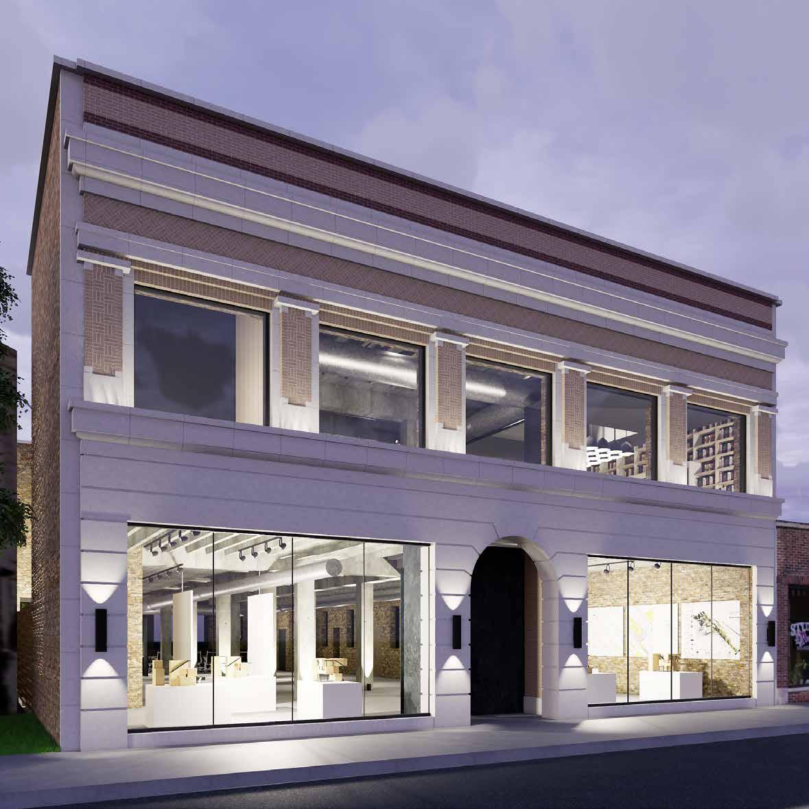 In need of severe updating, DMAC purchased the building in 2015 with the idea of adapting it for our office space on the second floor with open space for community events at street level. Backing into a residential neighborhood, DMAC also wanted to activate the rear of the building into something more casual and engaging. Former window openings are infilled with brick weave that add interest from the outside and add filtered light to the inside. Besides the base structure, an original herringbone parquet floor once used for Temple services and an original cast iron stairway will be refinished as feature elements in the new space.