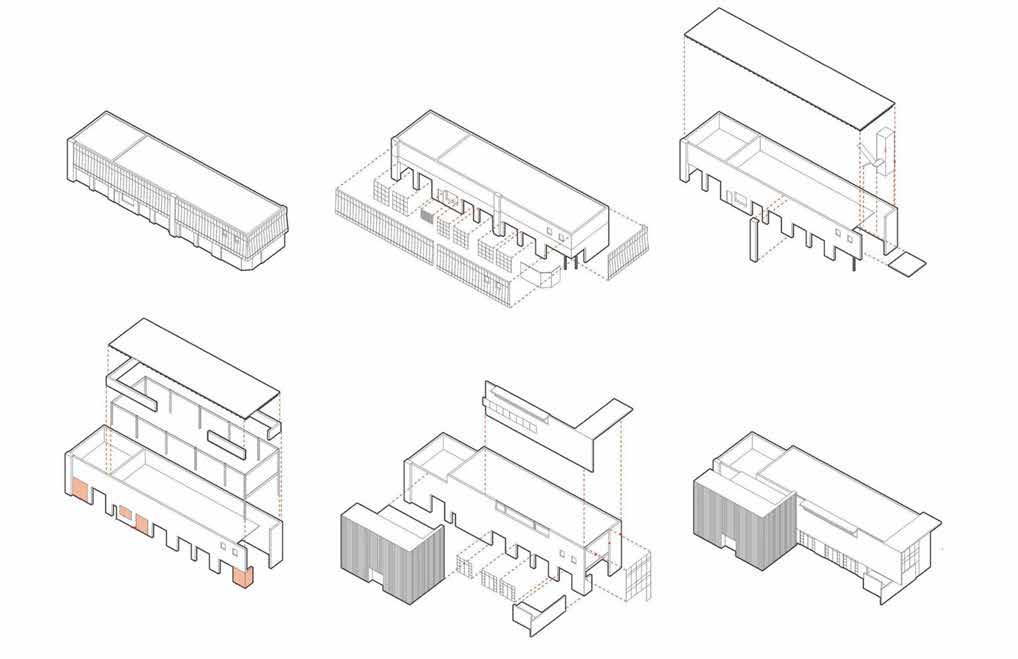 Over the years the original building was altered, in places to the detriment of the structural integrity. The base building was reinforced and perimeter walls extended to raise the roof for second-floor comfort. Acoustics also became an issue with many hard surfaces including a key design feature an exposed concrete block wall. The design and selection of finishes, treatments and furnishings became a significant part of the solution.