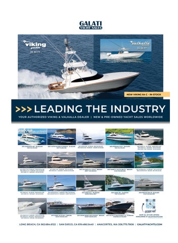 LONG BEACH, CA 562.684.6122 | SAN DIEGO, CA 619.486.5440 | ANACORTES, WA 206.775.7808 | GALATIYACHTS.COM 38-90 FT 33-55 FT 2001 CUSTOM 85 BRUCE ROBERTS | $1,450,000 JOE 714.336.1460 2012 SUNSEEKER 40M | $15,900,000 NICK 941.720.1321 SHOP ALL OF OUR LISTINGS WORLDWIDE AT GALATIYACHTS.COM 2010 VIKING 82 SB $4,750,000 | BRAD 562.755.2725 2016 VIKING 82 SB | $6,295,000 | CARMINE 941.725.0587 2006 VIKING 74 C $2,475,000 DARIN 619.944.2817 2006 VIKING 74 C $2,495,000 | NICK 941.720.1321 2005 VIKING 74 EB $2,150,000 | JIM 941.228.0530 2022 VIKING 72 SB $7,995,000 DARIN 619.944.2817 2022 VIKING 72 C EL | $7,995,000 | NICK 941.720.1321 2019 VIKING 72 C | $6,395,000 | NICK 941.720.1321 2000 HATTERAS 70 C SALSA $899,900 BRETT 949.456.6412 2003 FERRETTI YACHTS 680 MY | $889,000 CHAD 949.566.3355 2021 HATTERAS 65 GT | $4,995,000 | TONY 941.527.1273 1998 HATTERAS 65 SF $549,000 | ERIC 850.420.4391 2014 VIKING 62 C $2,495,000 | DARIN 619.944.2817 2021 VIKING 62 C | $5,725,000 | IAN 562.505.3502 2013 GARLINGTON 61 C | $3,895,000 | BRETT 949.456.6412 2002 GARLINGTON 61 SF | $2,995,000 | ALBERT 954.614.5777 2022 VIKING 58 C $4,195,000 TONY 941.527.1273 2018 PRESTIGE 560 FB | $1,340,000 CHAD 949.566.3355 2013 SABRE 48 SALON E | $859,500 GEOFF 949.510.4073 2013 GRAND BANKS 46SX EASTBAY | $839,500 GEOFF 949.510.4073 2021 VALHALLA BOATWORKS V.41 | $1,099,000 CARMINE 941.725.0587 2015 VIKING 52 SC | $1,599,000 | CHAD 949.566.3355 2015 VIKING 52 O | $1,759,000 ROGER 850.234.0295 2007 VIKING 52 O $974,900 | ERIC 850.259.3172 2011 VIKING 70 EB $3,595,000 | NICK 941.720.1321 2016 VIKING 70 C | $4,195,000 | MICHAEL 941.725.2782 2005 PERSHING 76 MY $1,045,000 NICK 941.720.1321 2013 VIKING 60 C | $2,490,000 DARIN 619.944.2817 LEADING THE INDUSTRY>>> YOUR AUTHORIZED VIKING & VALHALLA DEALER | NEW & PRE-OWNED YACHT SALES WORLDWIDE NEW VIKING 64 C - IN-STOCK