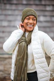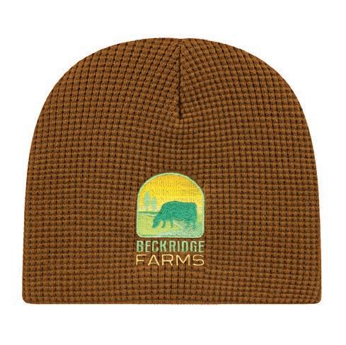 Custom knits are made with 100% acrylic yarn. Available colors are located on page 77. Choose up to four yarn colors when designing a custom knit. Due to color variations of dye lots, exact color matches of yarn are not guaranteed.