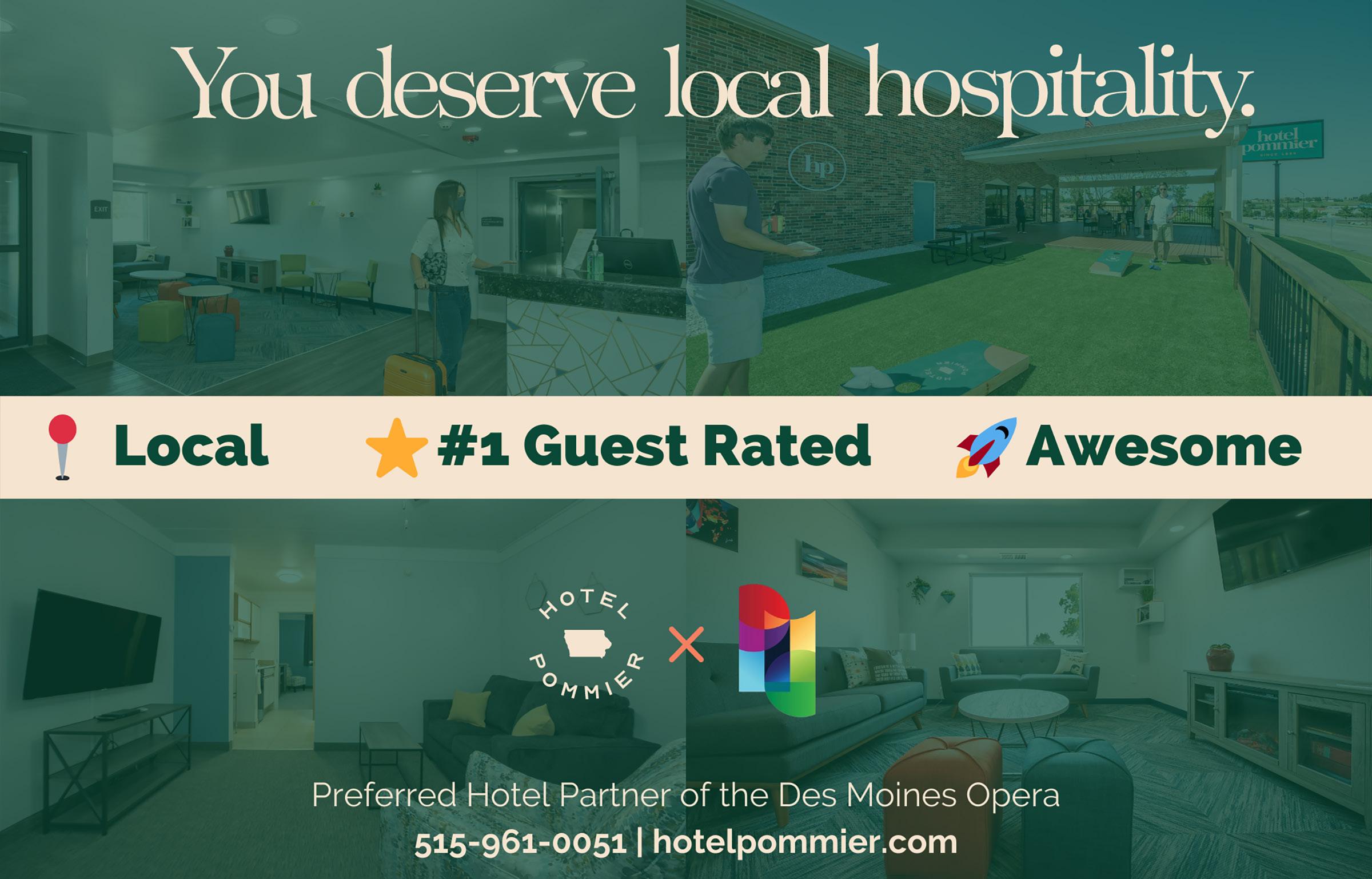 Des Moines Metro Opera thanks our advertisers, whose support helps us provide this complimentary program to our Summer Festival audiences. For advertising information, call our office at 515-961-6221 or visit dmmo.org/advertising.