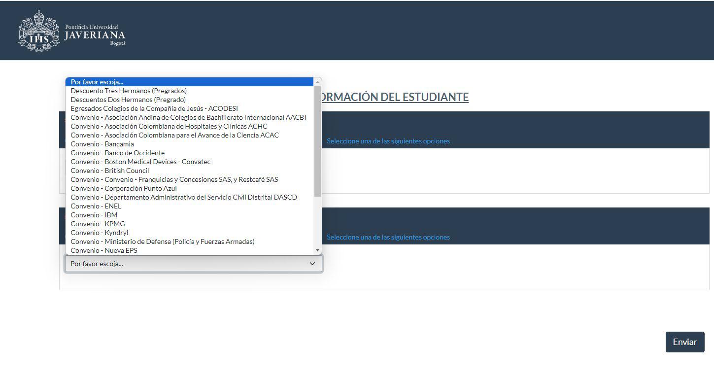 5% - 20% de descuento sobre el valor de la matrícula para los hijos de los empleados de la entidad que se matriculen en alguno de los programas de pregrado que incluye este convenio.