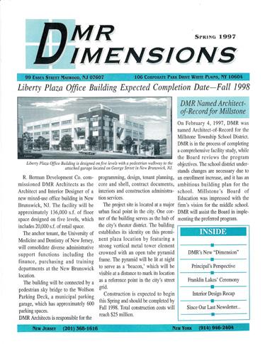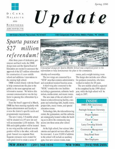 DMR is founded on July 15 by a staff of four, led by Lloyd Rosenberg, in Rochelle Park, NJ. With a vision to focus on primarily pre-K-12 educational work, the firm sets out to land its first client, which turns out to be the Brewster Central School District. A satellite office in White Plains, NY is also opened to help complete the project.