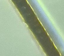 1. Dribble a line of UV resin onto your slide and lay one hair on top