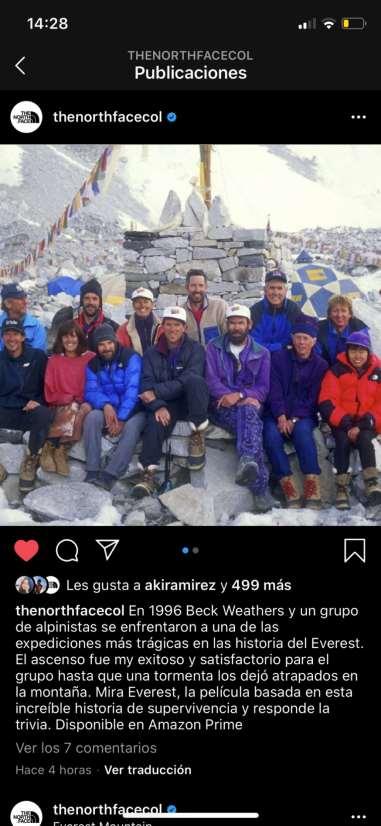 El domingo 26 de abril, seguimos compartiendo información y experiencias sobre el Everest, invitamos a ver esta famosa película y a conocer los verdaderos protagonistas de esta historia. Extendimos nuestra interacción con una trivia.
