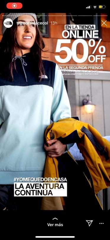 Promoción válida del 1 al 14 de abril de 2020 o hasta agotar existencias, lo primero que ocurra. Por la compra de cualquier artículo en las marcas The North Face y Smartwool, lleva un segundo producto de igual o menor valor con un descuento del 50%. Válido únicamente en tienda Online www.thenorthface.com.co.