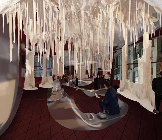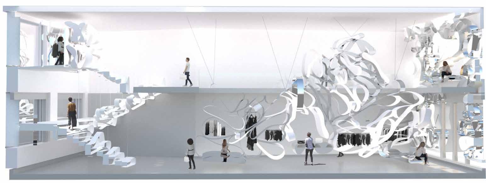 For this project I designed a two-floor retail store for fashion desginer Nensi Dojaka on New Bond Street, inspired by her bold yet delicate aesthetic. For this project, we were given two materials, paper and steel, to experiment with. I began exploring their potential by bending them to create a sense of bounciness, which became the foundation of the store’s design concept.