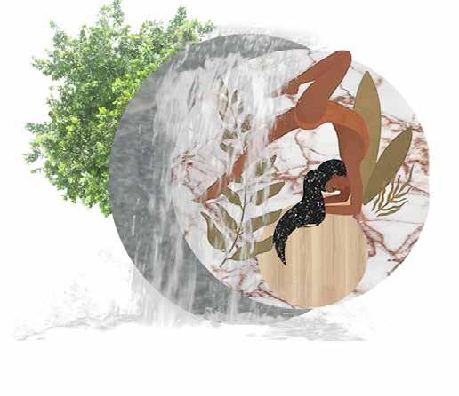 The design of this restaurant blends the feel of an outdoor terrace with the comfort of an indoor space. By using natural materials like stone, wood, rattan, and water, along with soft, calming colors, the atmosphere creates a peaceful, relaxing environment. The idea was to transport guests to a serene, nature-inspired setting, offering a sense of calm and escape while enjoying their meal in a cozy, covered space.
