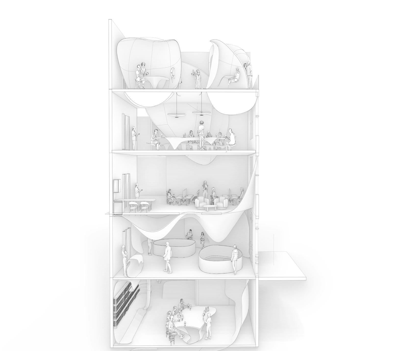 This project transforms 120 Marylebone Lane into Marques de Riscal’s central London location, featuring various spaces such as: office spaces, a wine bar, reception area, exhibition space, and sommelier training.