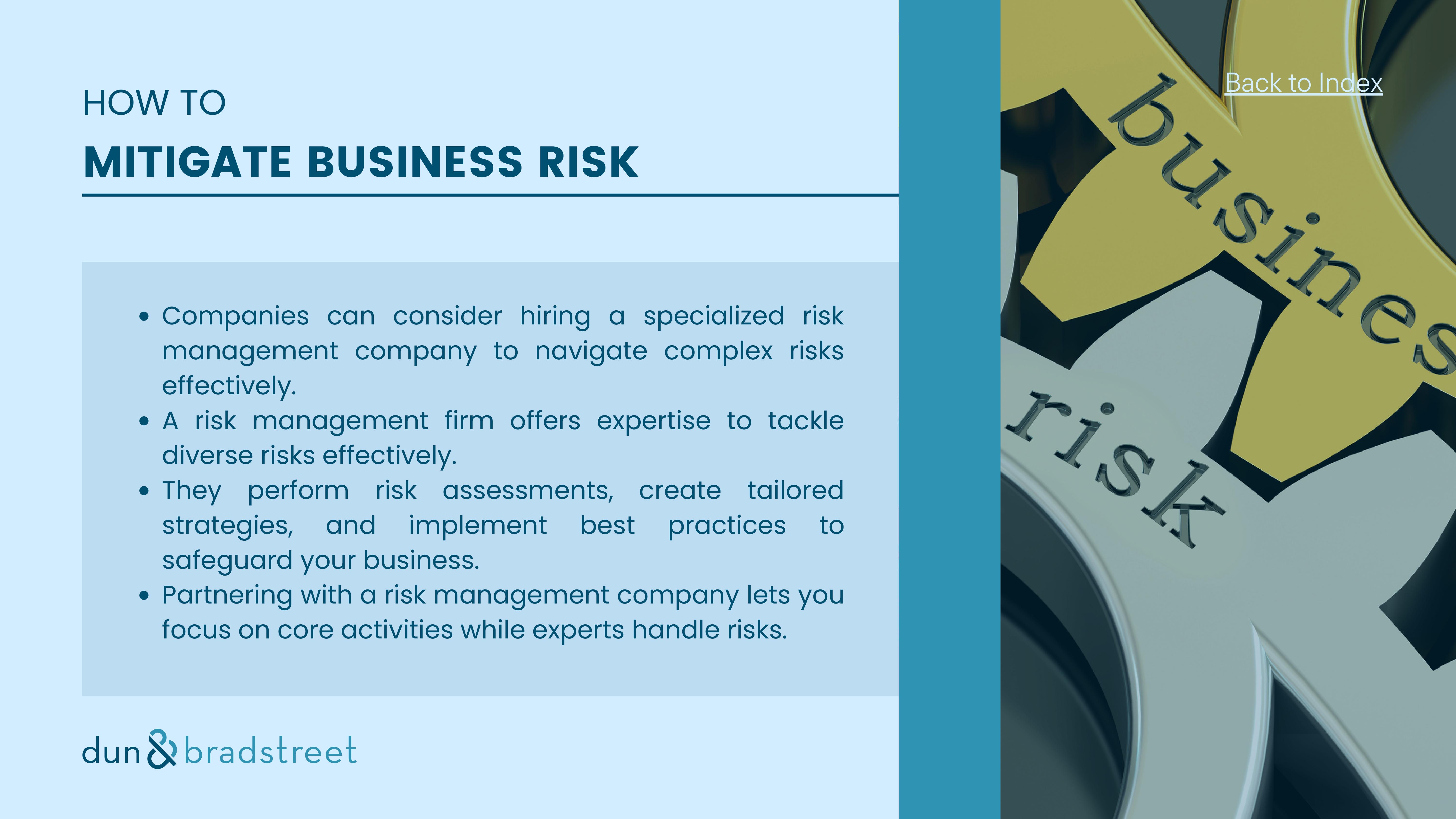 To mitigate these risks, companies need to adopt comprehensive risk management strategies that involve identifying, assessing, and proactively addressing potential threats. Risk management allows businesses to make informed decisions, protect their assets, and improve their resilience in the face of uncertainties.