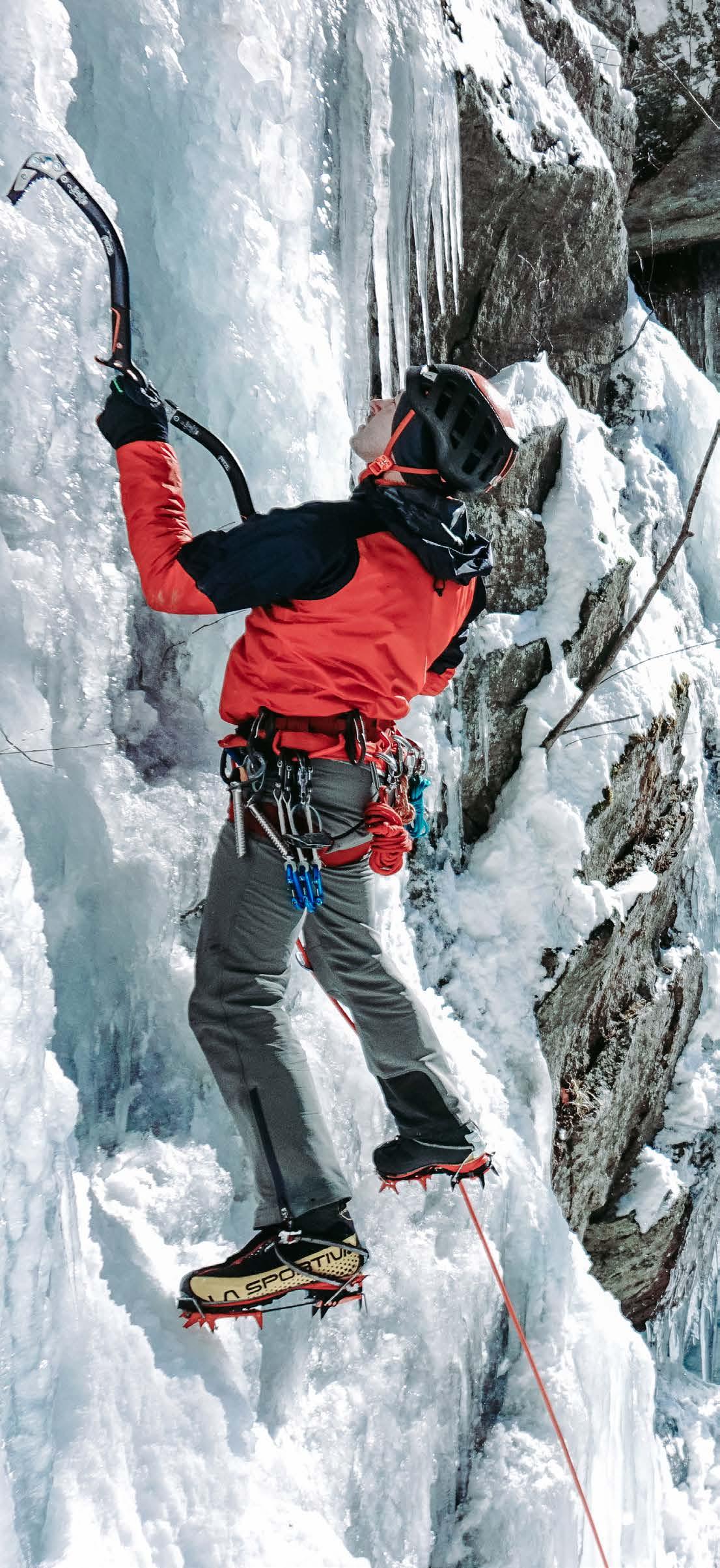 ▲ CONNECTICUT: An ice climber makes his way up a gleaming wall of ice in Peoples State Forest, Barkhamsted, during a guided expedition with Ascent Climbing.