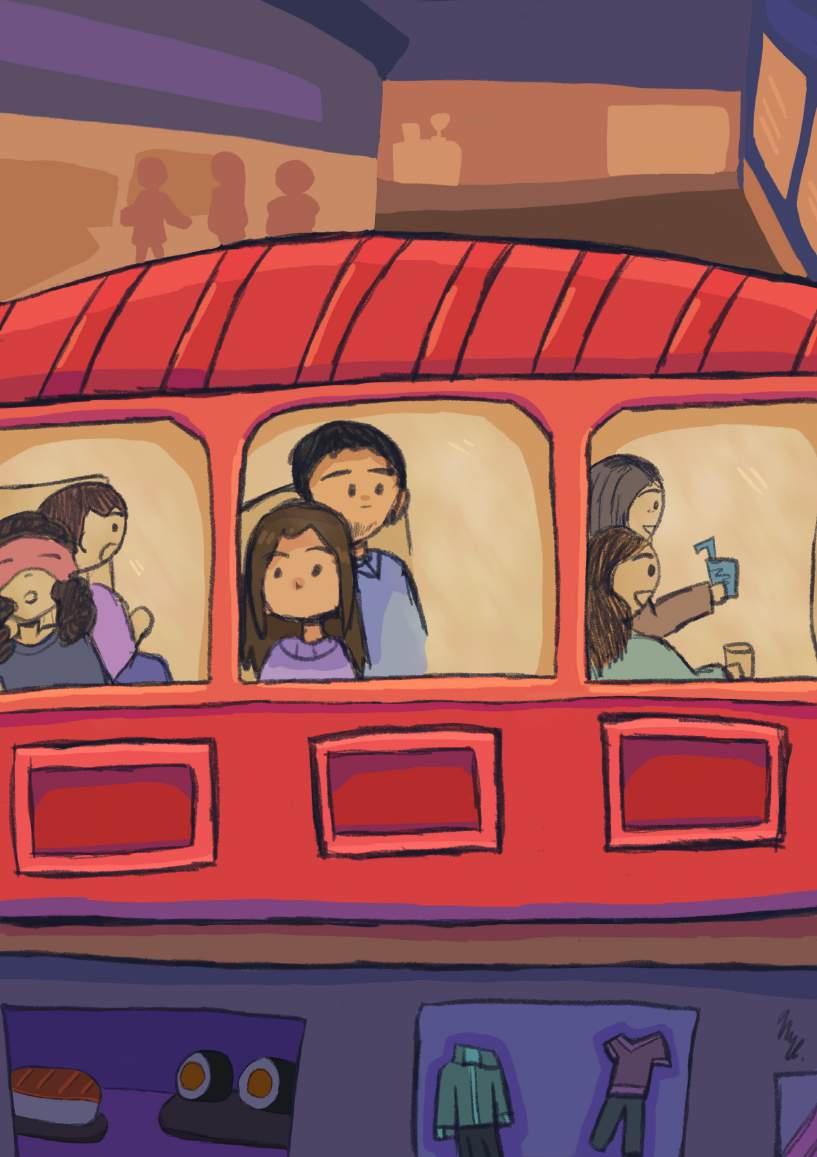 i lie in the back of the little red train, dreaming that i am six, leaning in against father’s shoulder as we trudge around shopping malls.