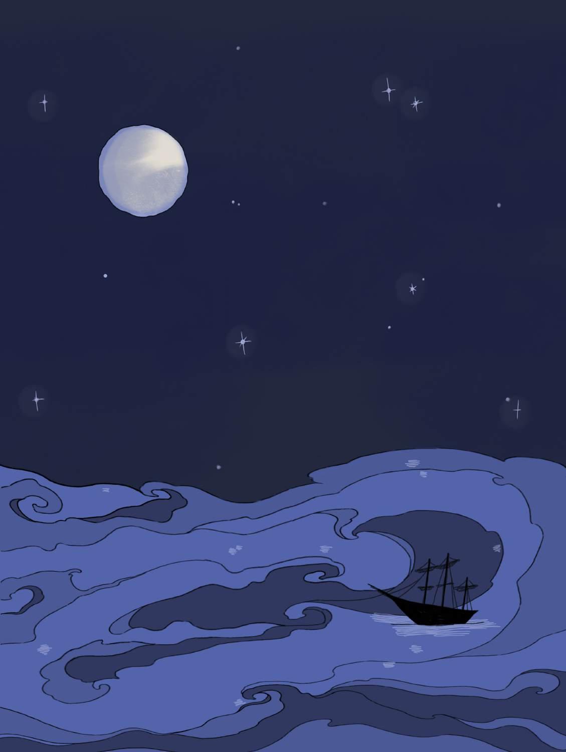 The gentle waves rocked the ship on the moongladed sea, the evanescent gleam of stars glinted o the bow.