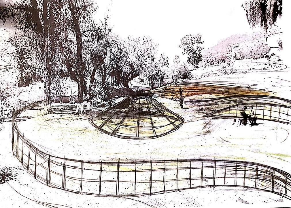 Debido a que el Palacete es un inmueble histórico y de valor patrimonial localizado en los límites del Área de Preservación Intensiva (Distrito 1), el diseño pretende utilizar la Arquitectura de Integración como estrategia de intervención de tal manera que se incorporen elementos contemporáneos sin quitar relevancia al inmueble existente. De los tres partidos, el seleccionado (número 3) toma la analogía de las cubiertas del Palacete con sus ángulos y formas triangulares. Asimismo, se considera la integración al paisaje natural el cual es parte del sitio como bosquecillo desde el período colonial.
