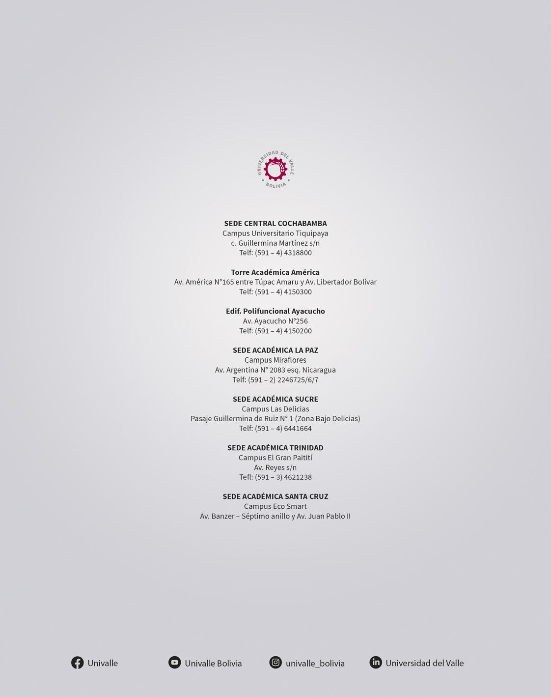 De la misma manera se agradece a las autoridades de la Facultad de Tecnología de la Universidad Privada del Valle por el compromiso con la publicación de artículos que son de interés a nivel nacional.